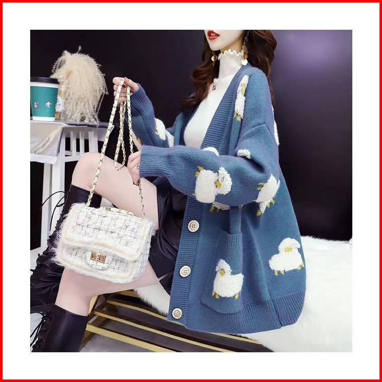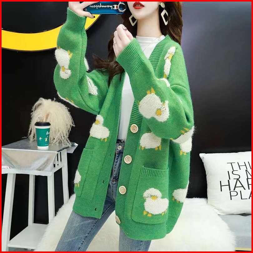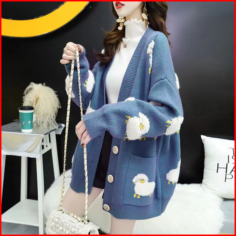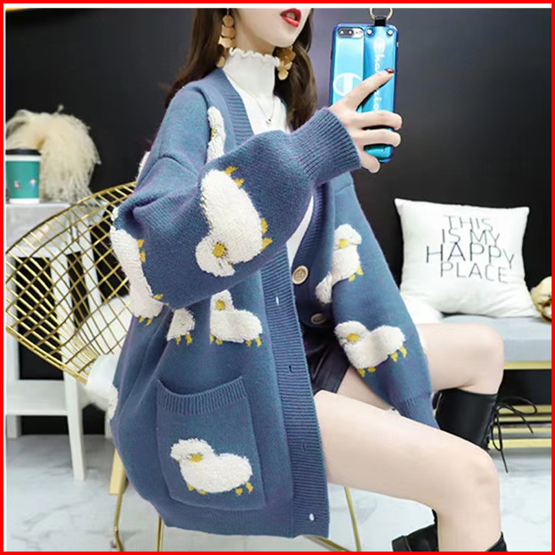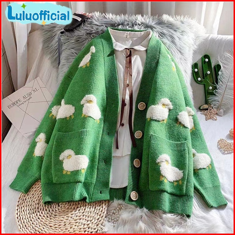 Lulu Jaket Sweater Cardigan Rajut Longgar Gaya Kartun Jepang