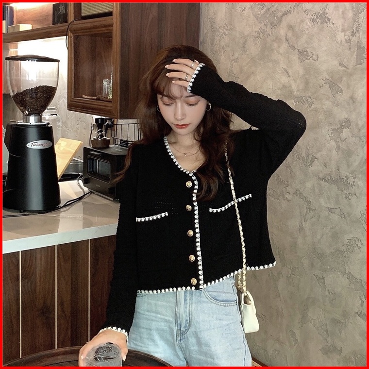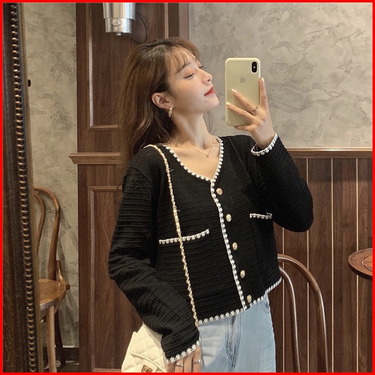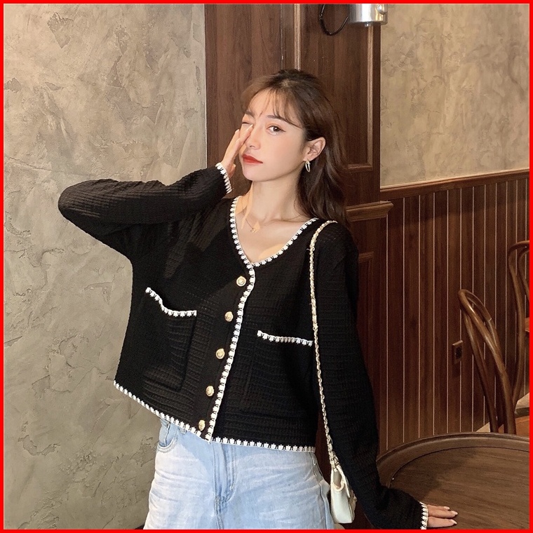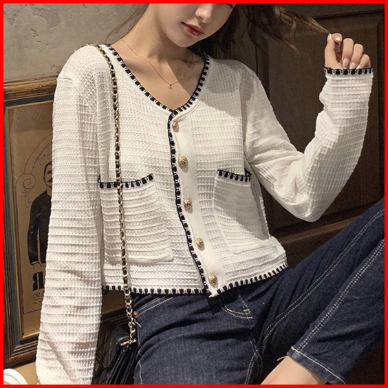 Cardigan Rajut Awal Musim Gugur Baru Tipis V-neck Renda Wewangian Kecil Atasan Sweater Lengan Panjang Ramping