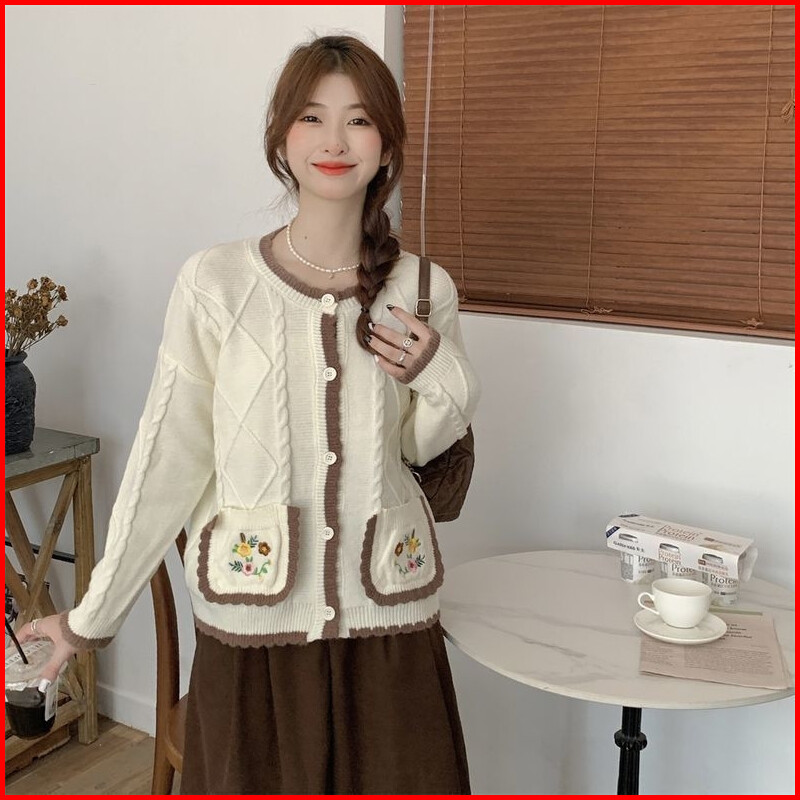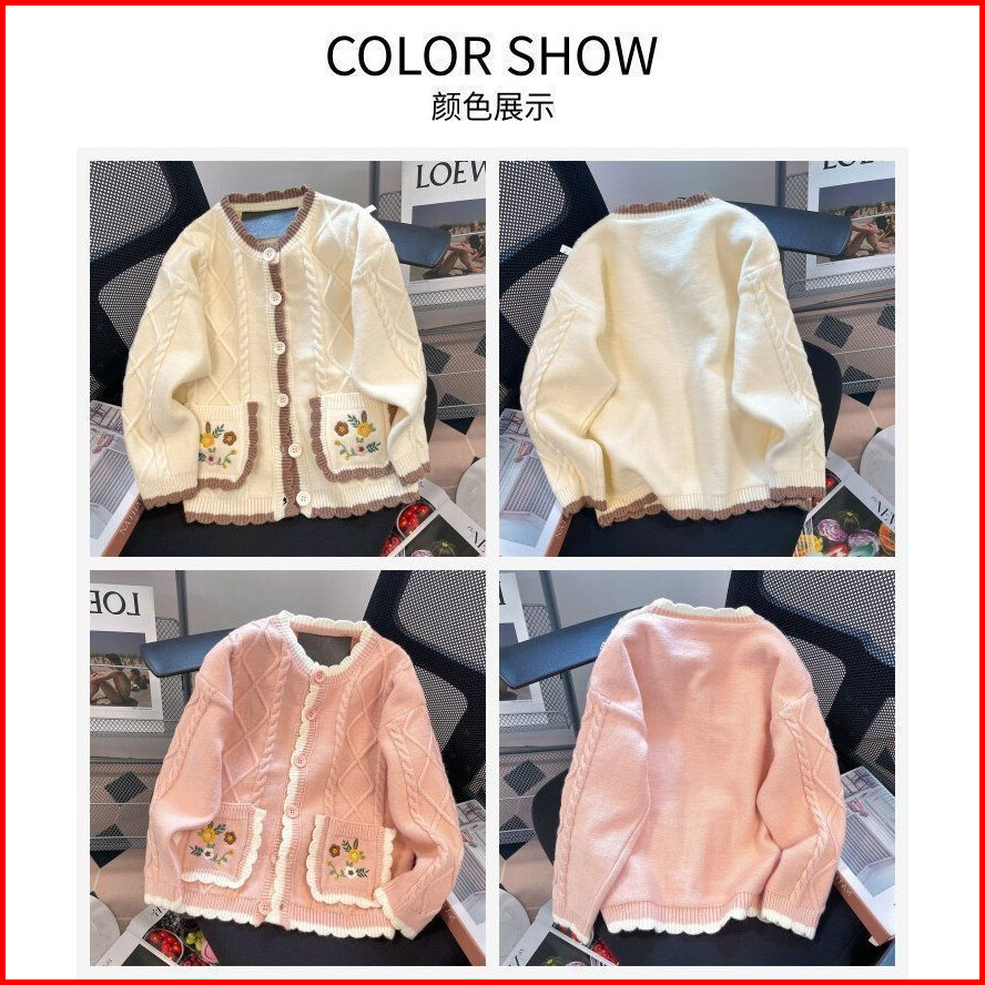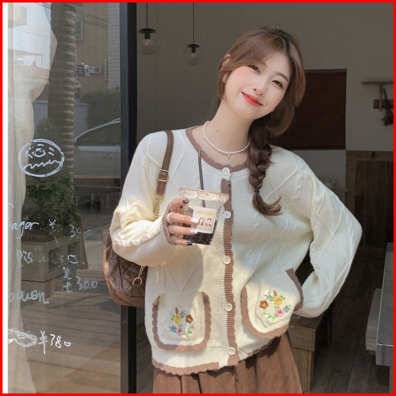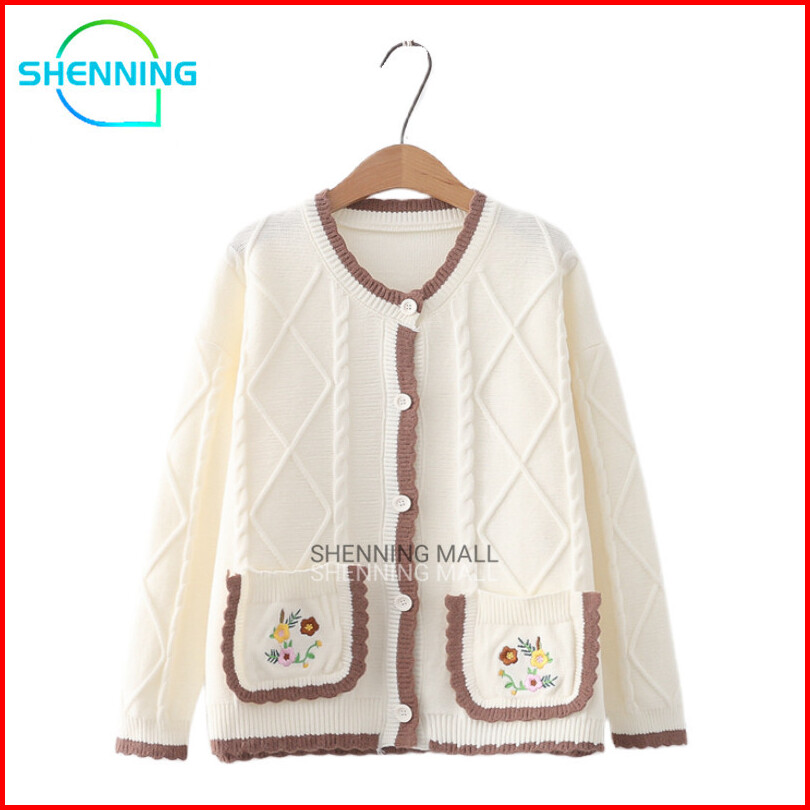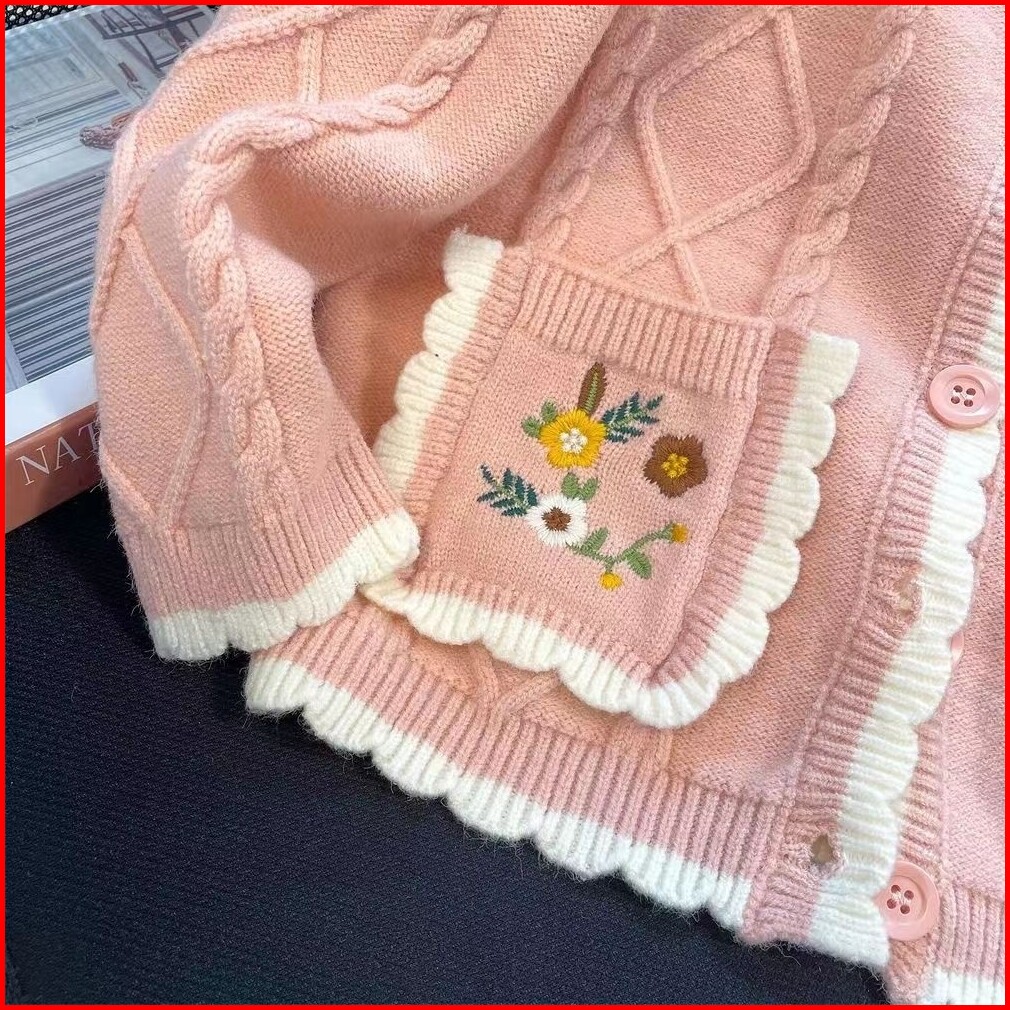 Shenning Cardigan Rajut Premium Outer Rajut Cute Motif Bunga Saku Bordir Soft Knit