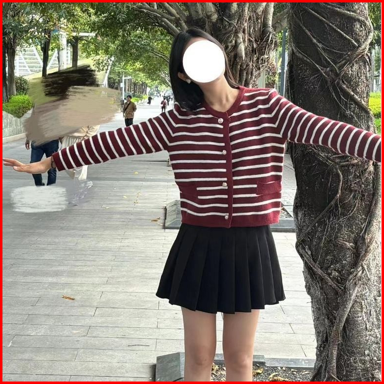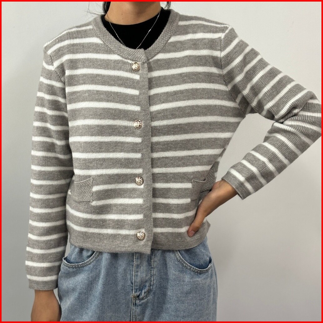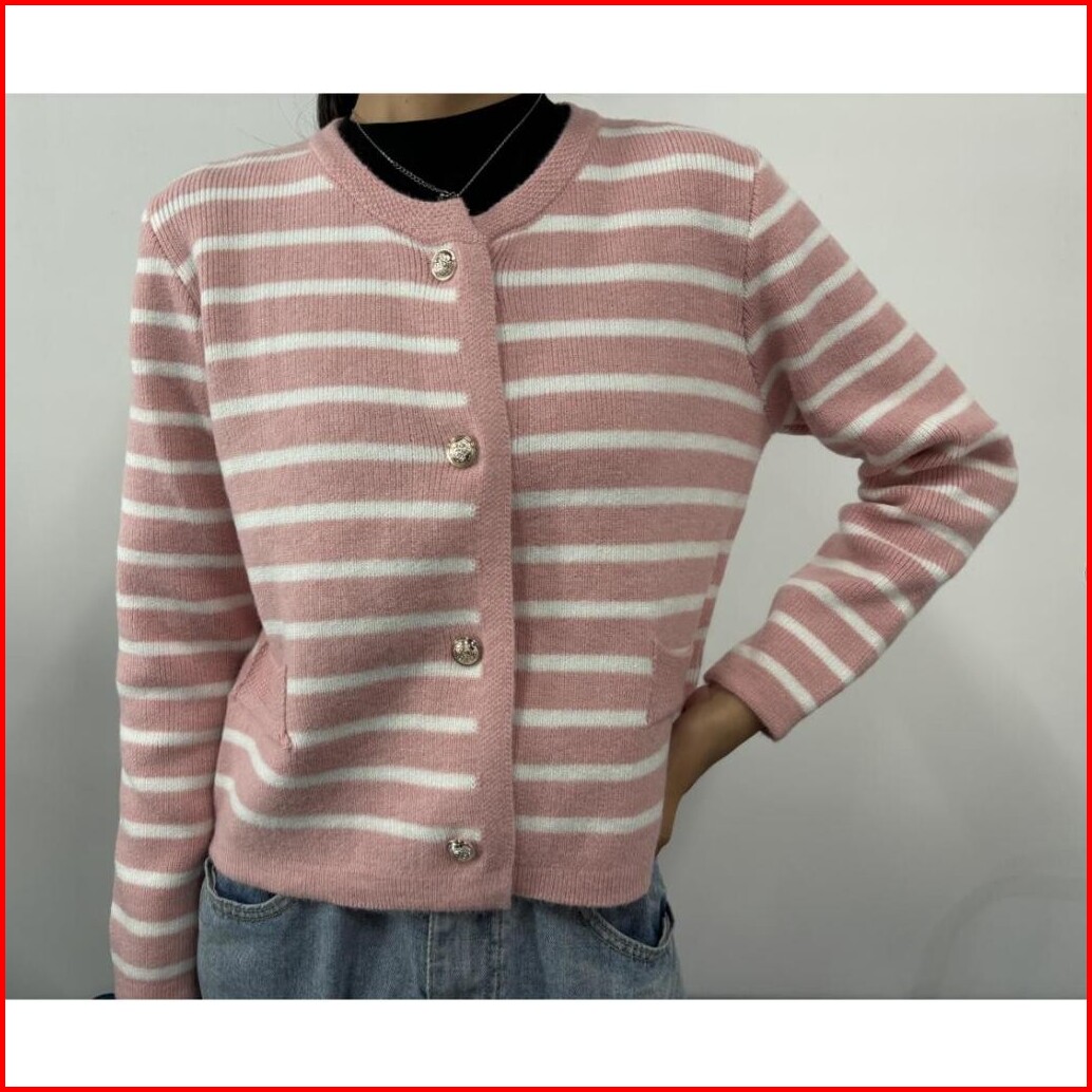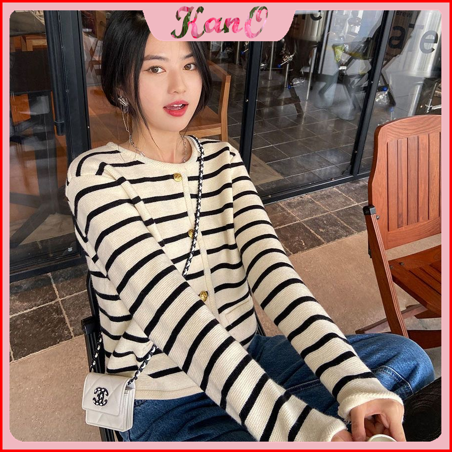 Kano Cardigan Stripe Wanita Cardigan Korea Outer Rajut Knit Soft Basic Premium Cardigan Rajut Button