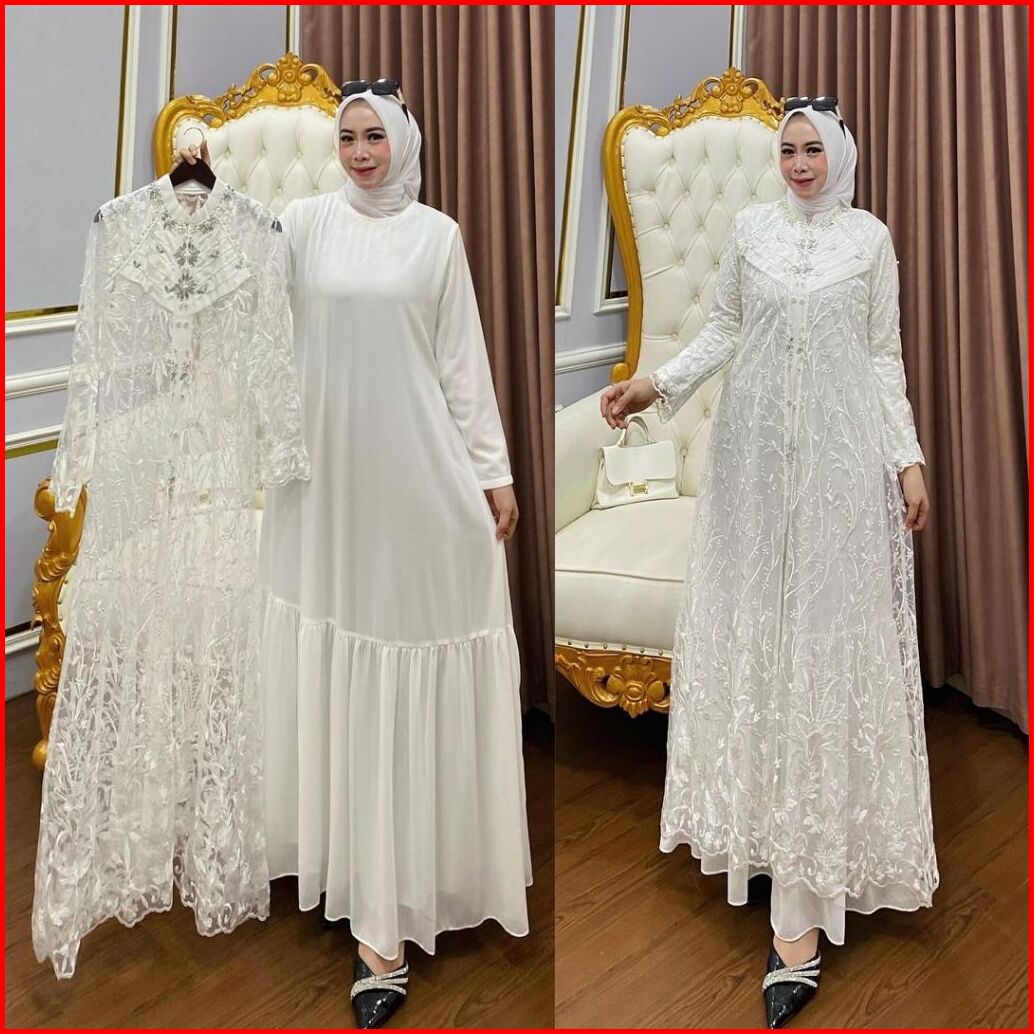 Inara Dress Set Outer Brukat Mix Ceruty Babydoll Full Furing Gamis Kondangan Terbaru 2024 Dress Wanita Muslim Kekinian F