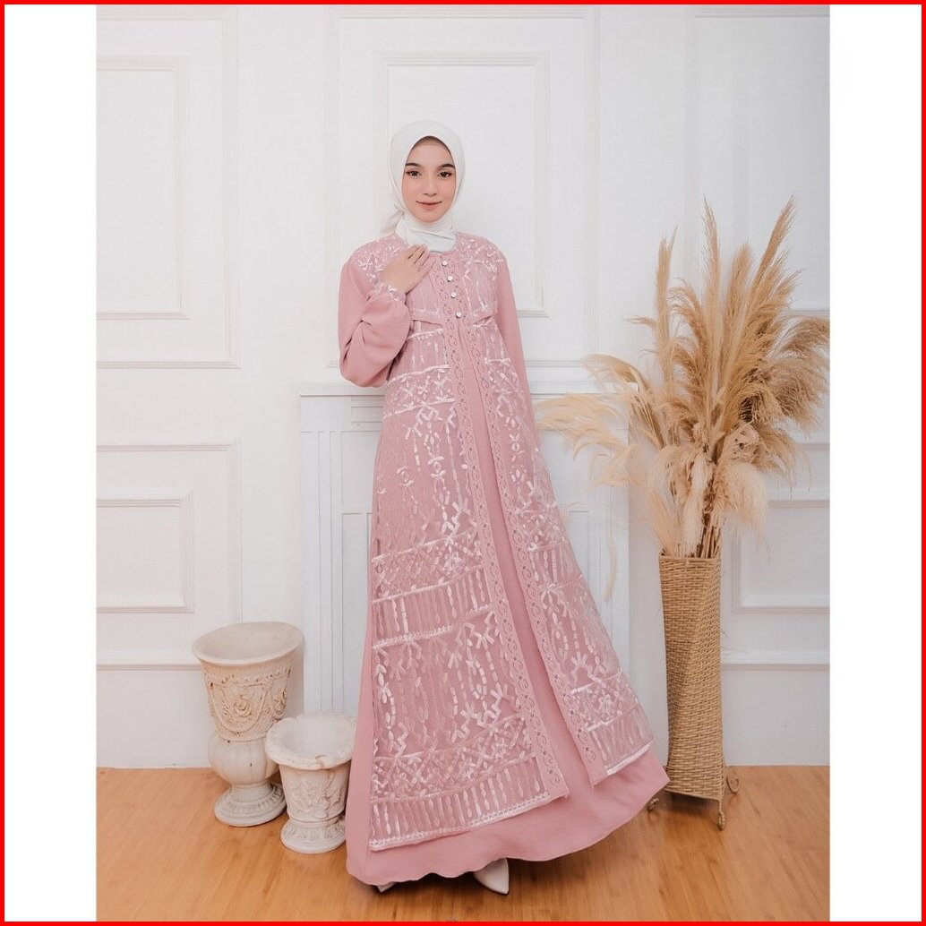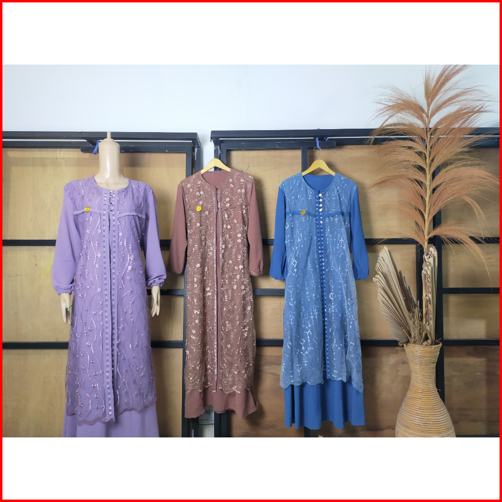 Gamis Brokat Wanita Terlaris Busana Muslim Trend Cringkle Mix Brokat