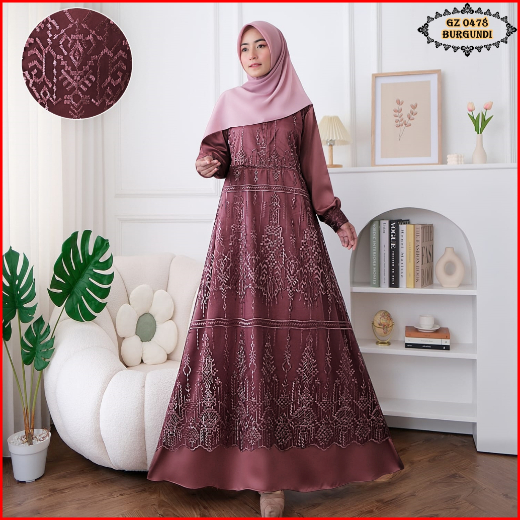 Gamis Brukat Tille Gz0478 Burgundi Gamis Kondangan Gamis Pesta Gamis Jumbo Gamis Burgundi