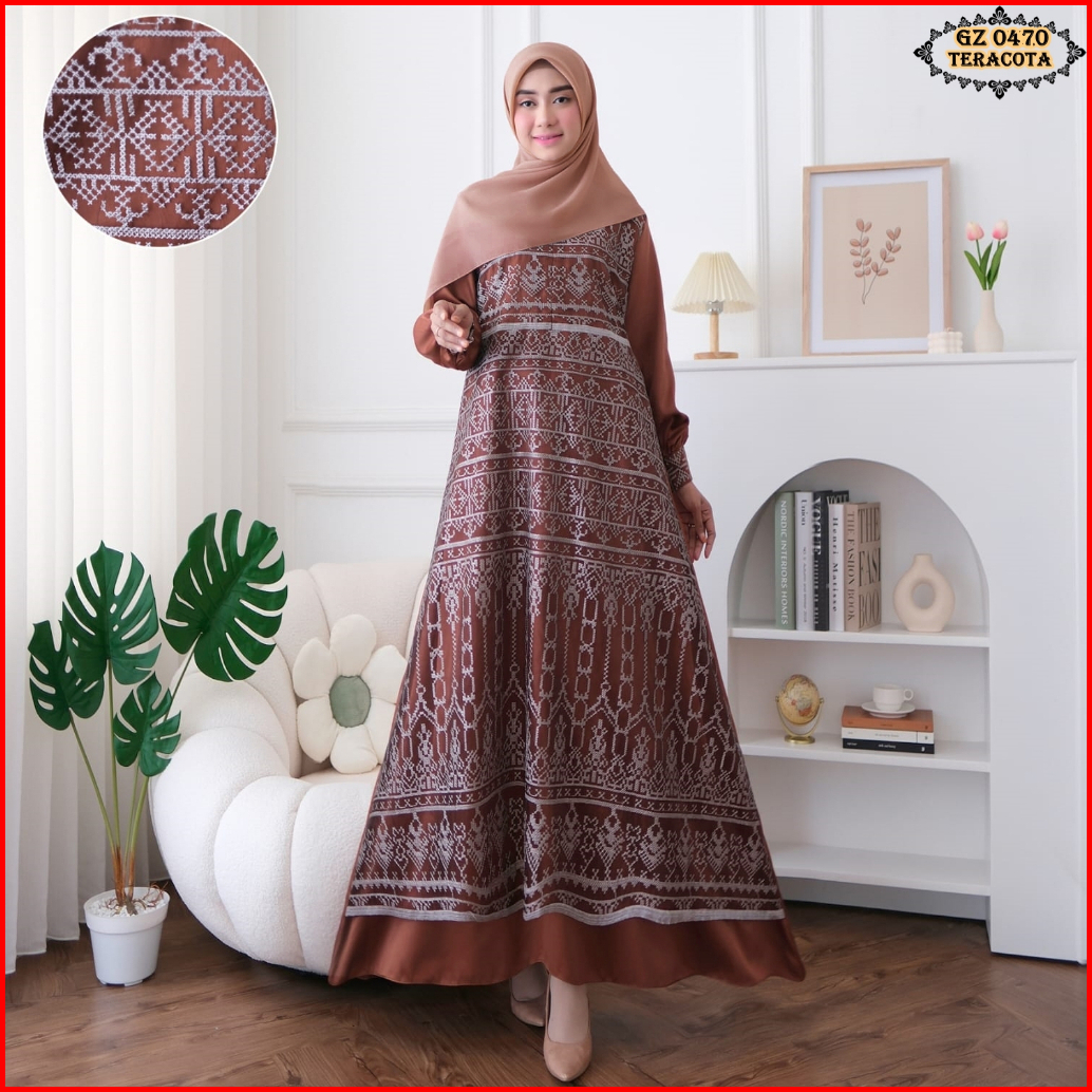 Gamis Brukat Organza Gz0470 Teracota Gamis Kondangan Gamis Pesta Gamis Jumbo Gamis Teracota