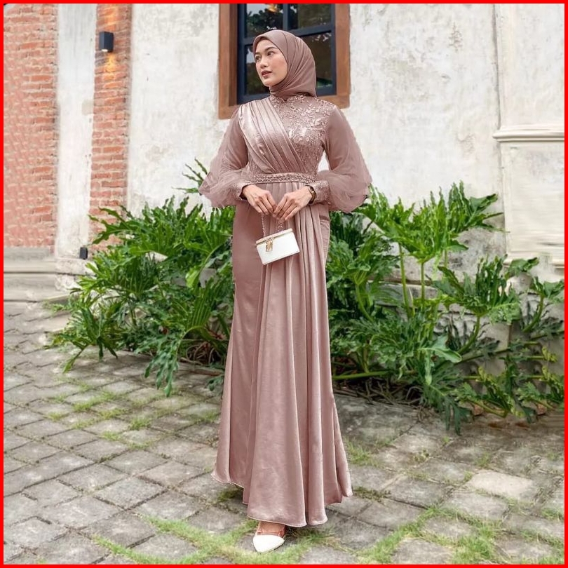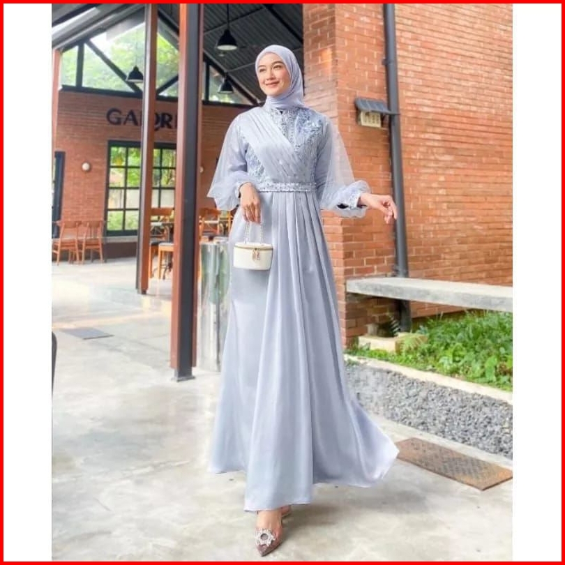 Gamis Adeva Dress Brokat Kombinasi Fashion Muslim Wanita Gamis Kondangan Modern Terbaru
