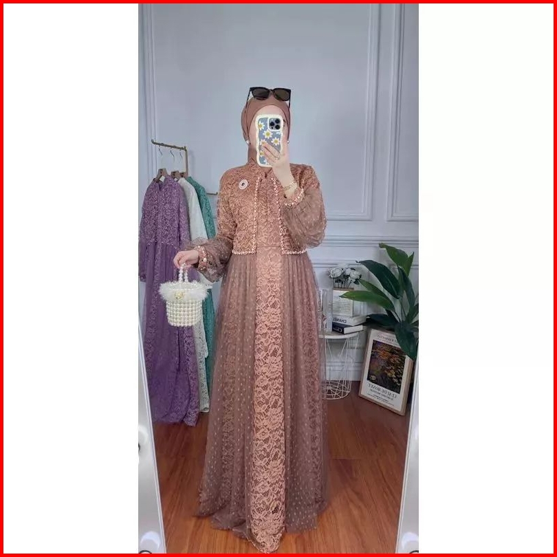Gamis Ozias Aurel Motif Bunga Busui Kondangan Lebaran Mymyfashion Dress Maxi Brokat Import Premium
