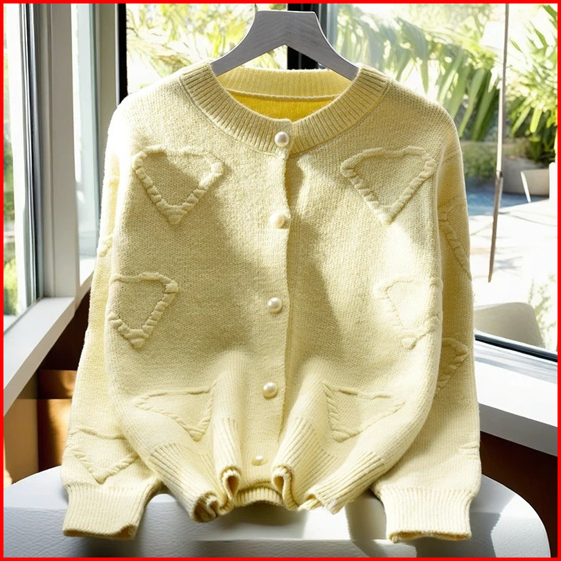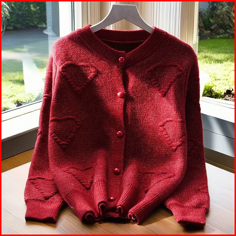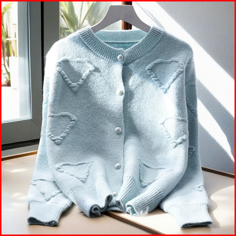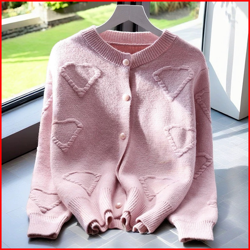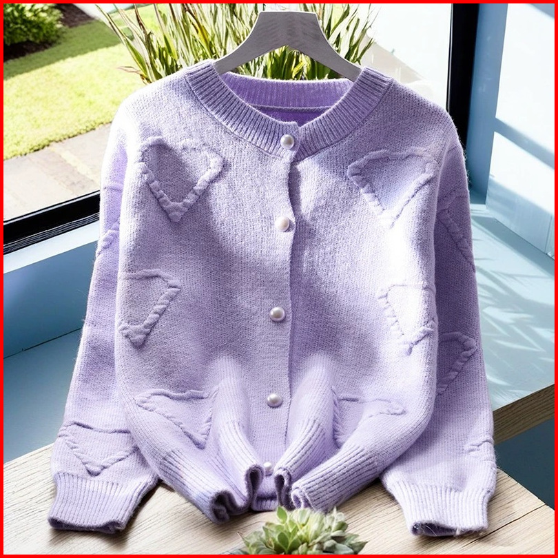 Lulu - Cardigan Rajut Knit Lengan Panjang Motif Heart Style Korea 5229m