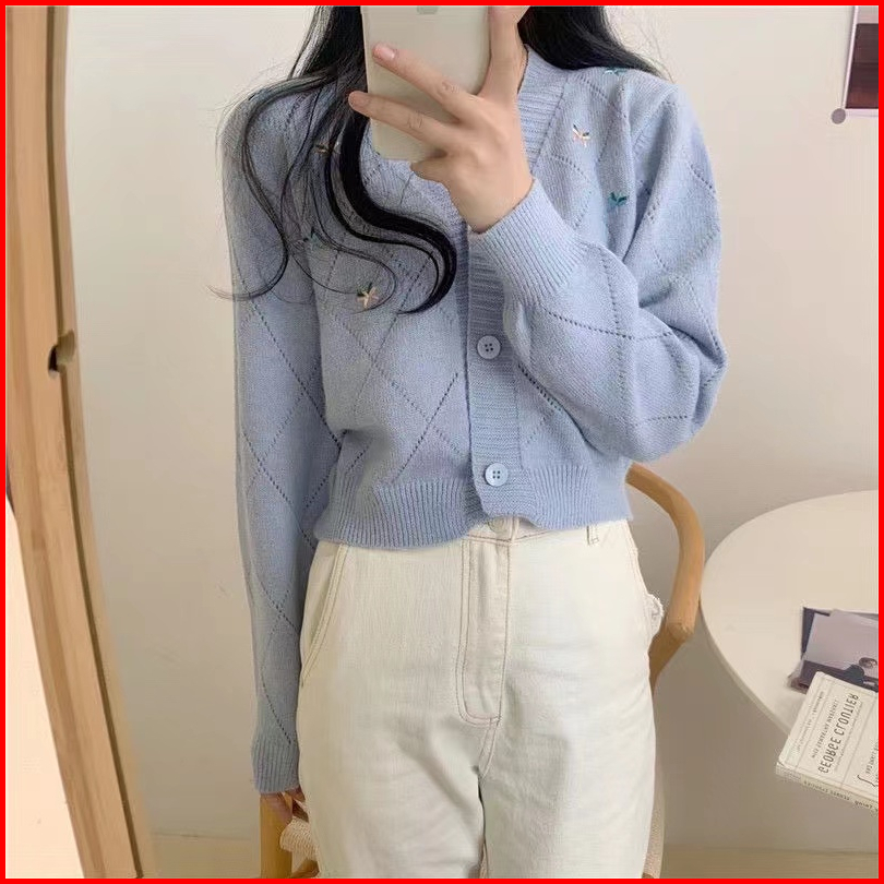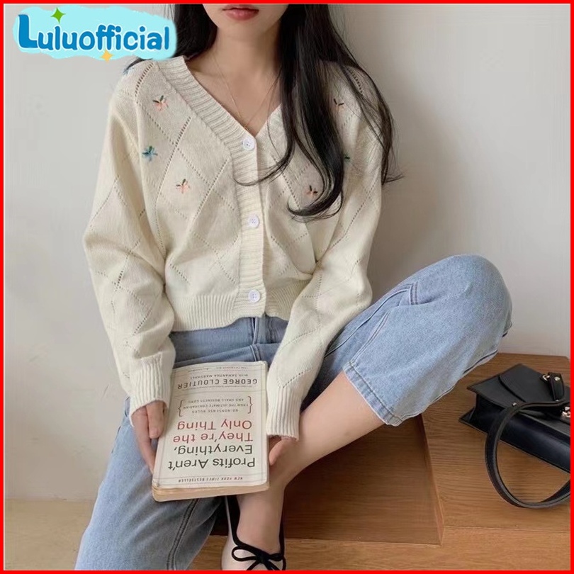 Luluofficial Cardigan Rajut Blossom Motif Bunga Import