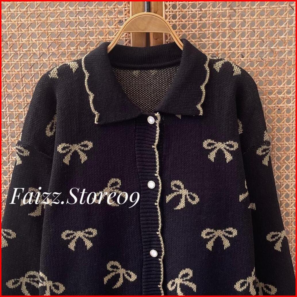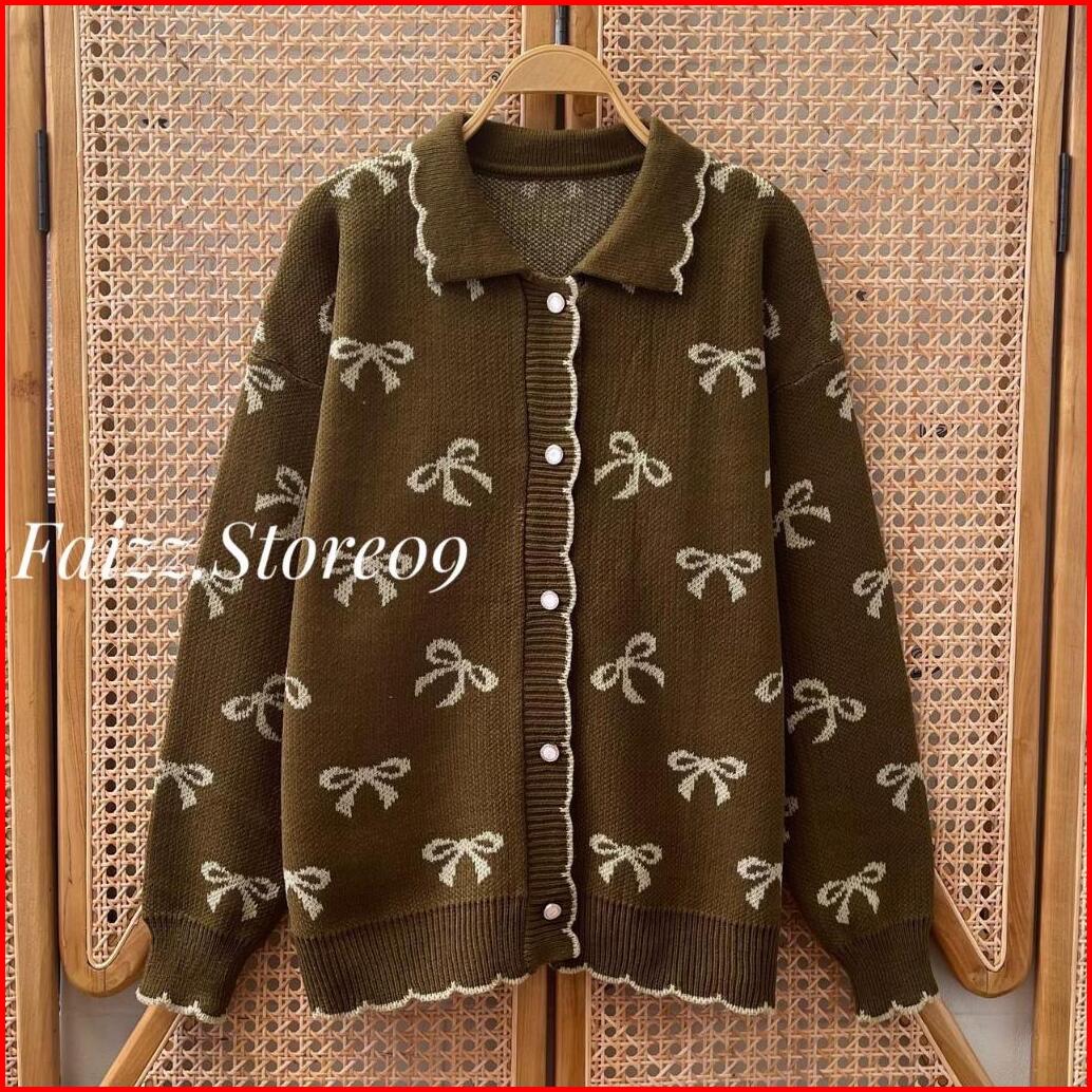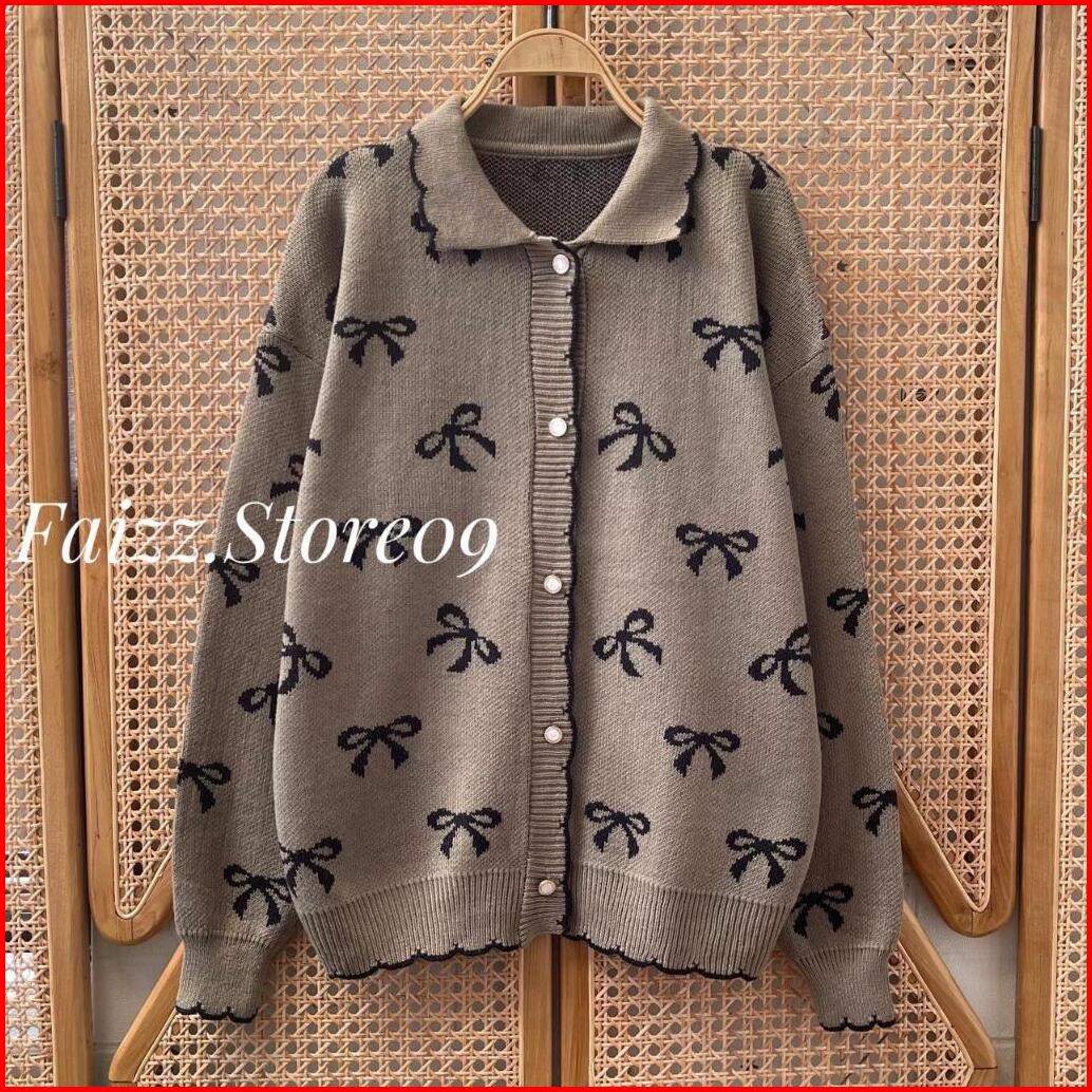 Poppy Outer Kancing - Cardigan Rajut Oversize Berkerah Motif Pita Atasan Korean Style Wanita Premium