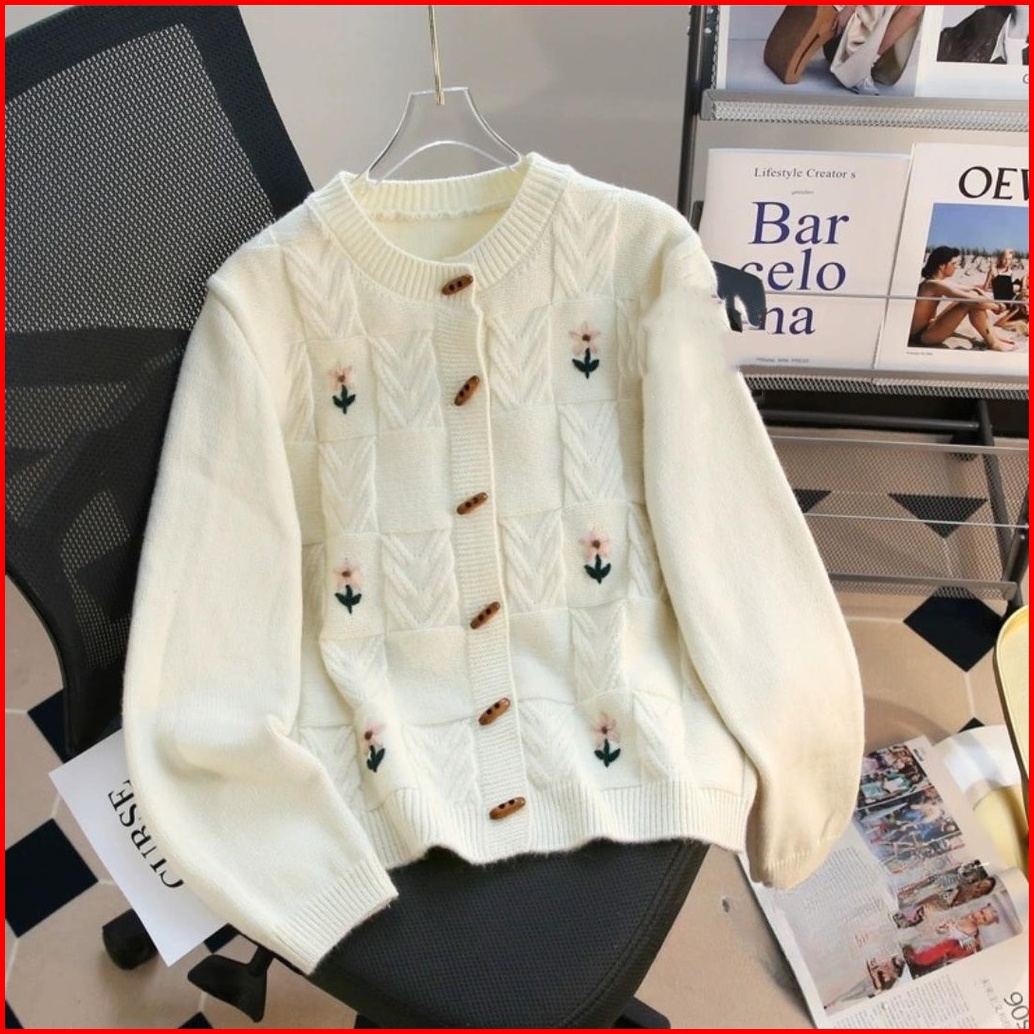 Monica Cardigan Rajut Knitwear Blossom Motif Bunga Knit Bunga Matahari