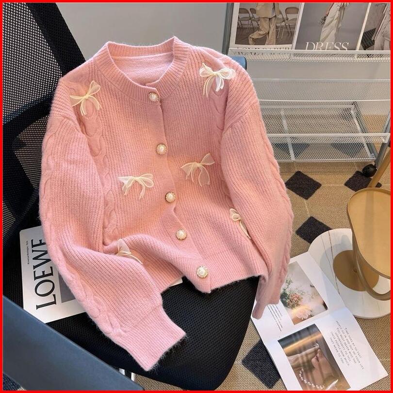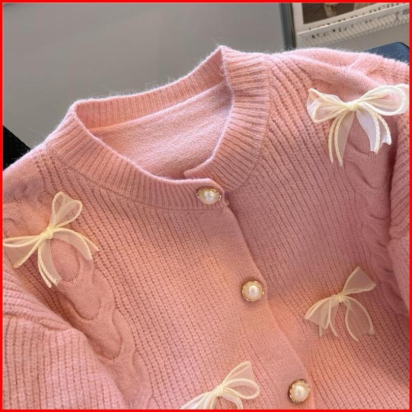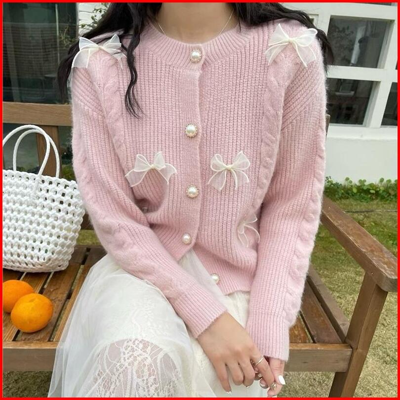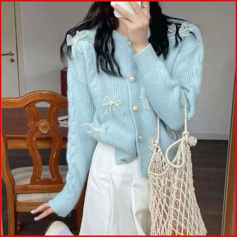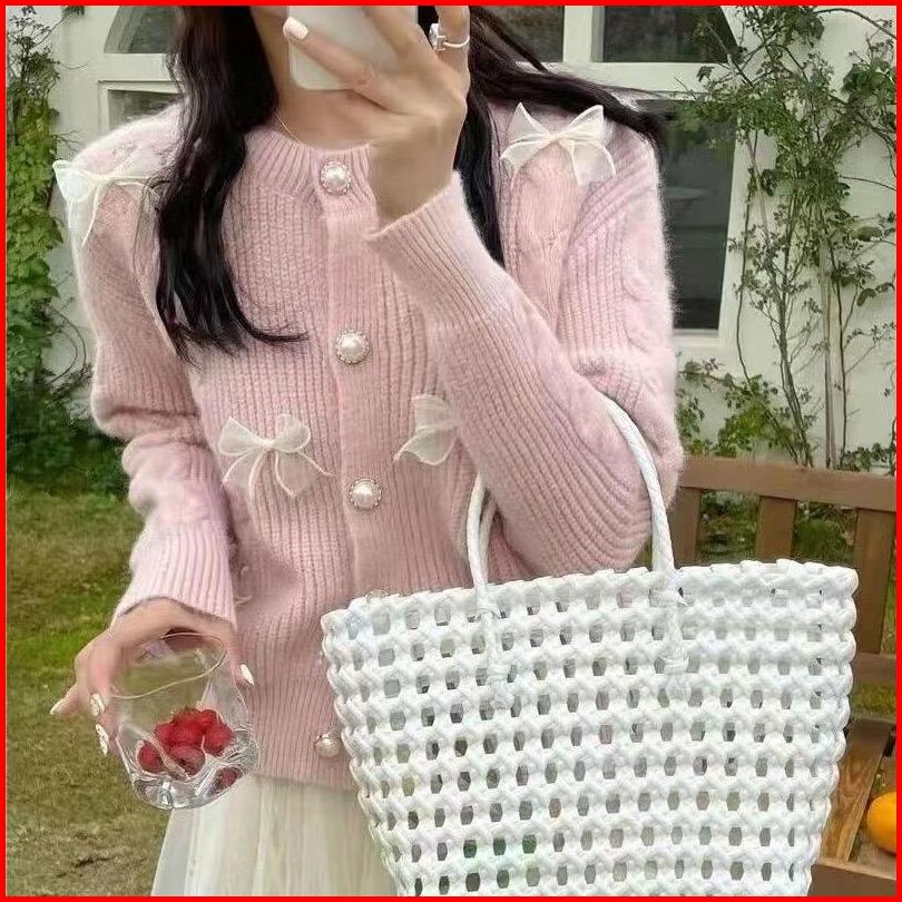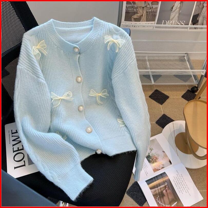 Miwe Atasan Sweater Cardigan Rajut Pita Ribbon Elegan Terbaru Korean 3555