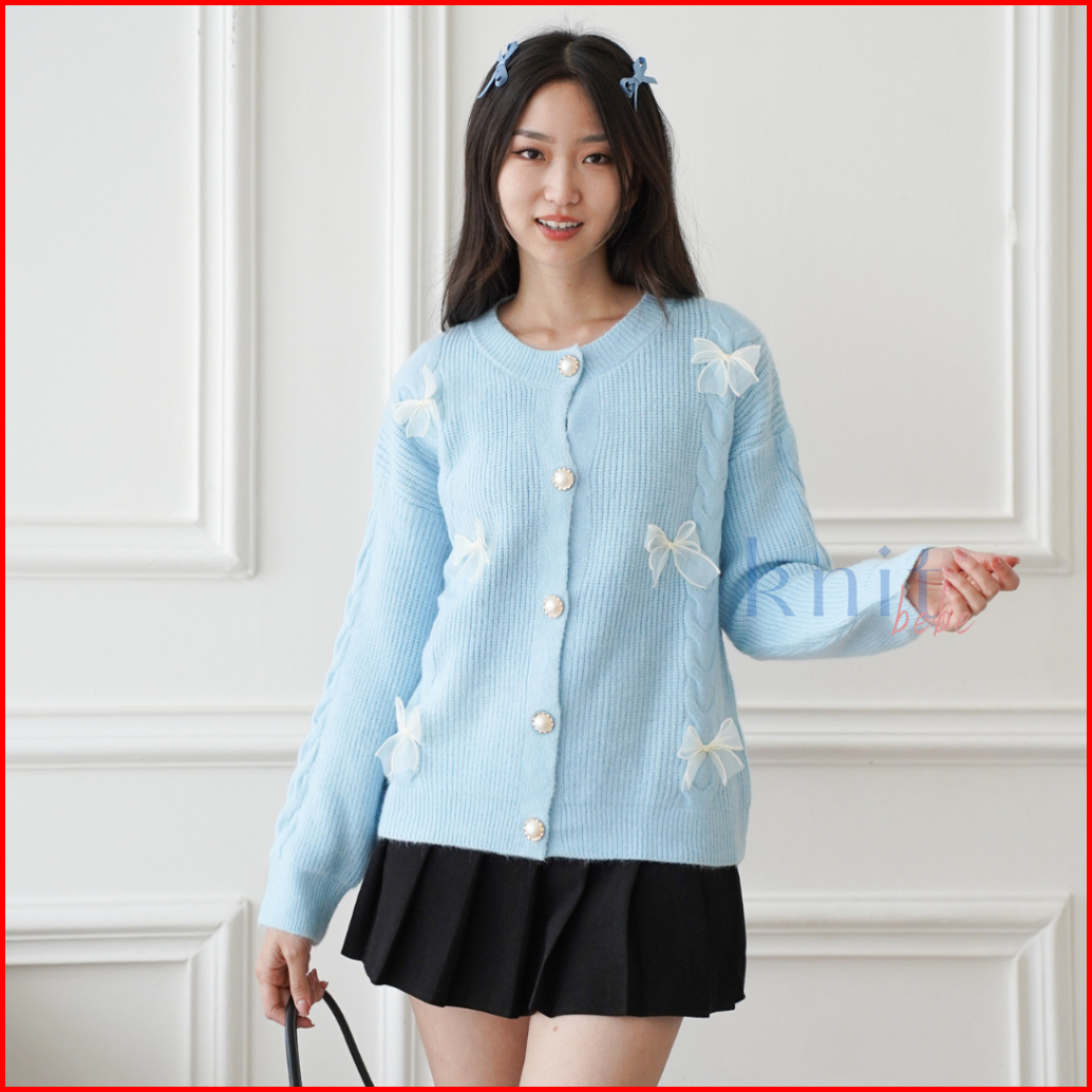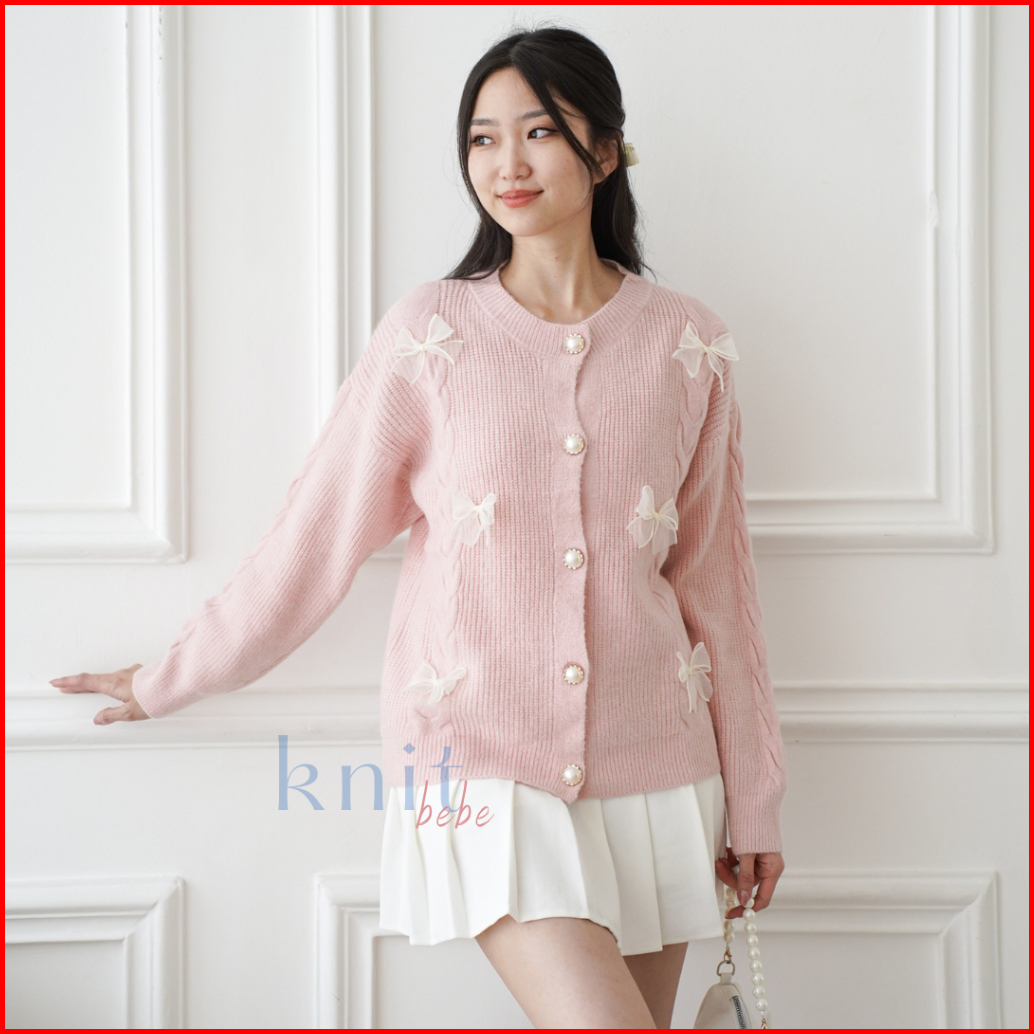 Knitbebe - Sooah Atasan Cardigan Rajut Ribbon Knit Top Pita