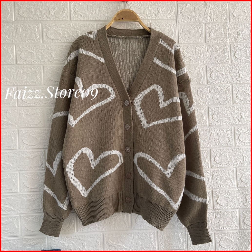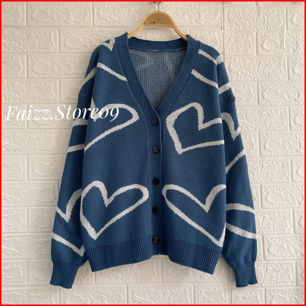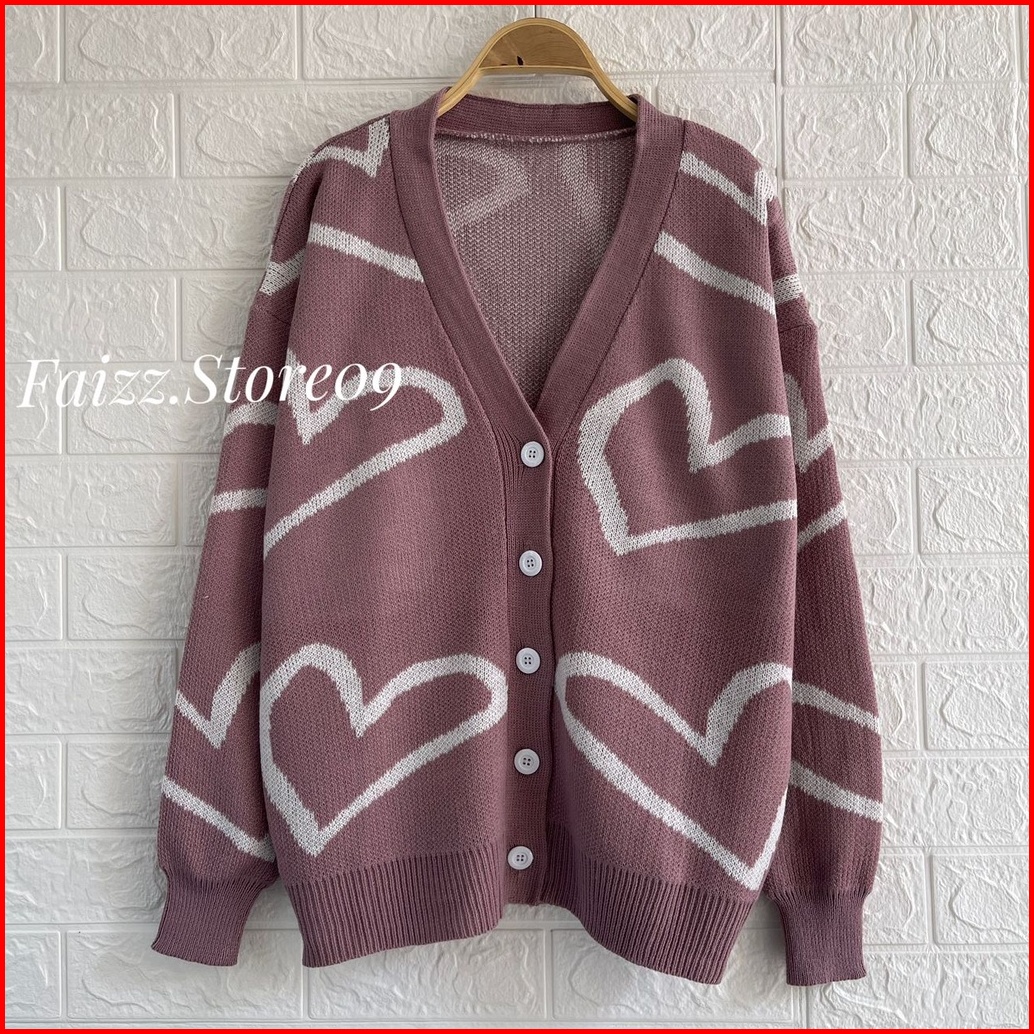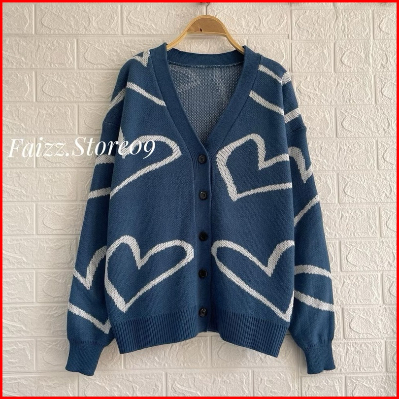 Angela Cardigan Rajut Kancing Polos Motif Love Atasa Lengan Panjang