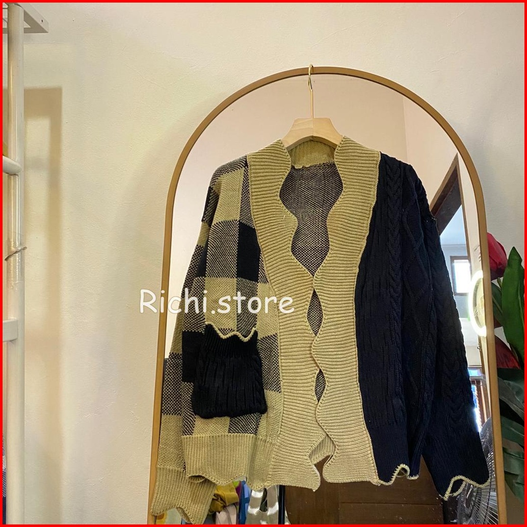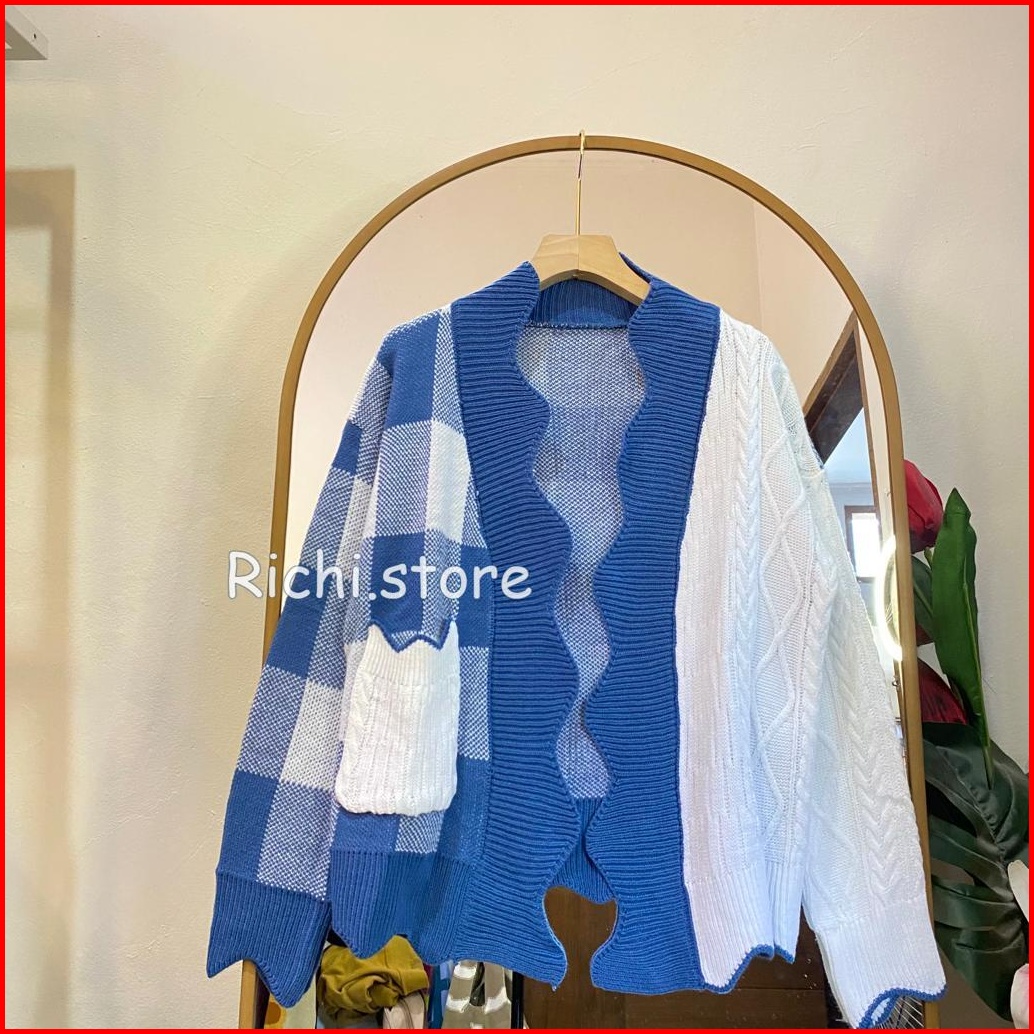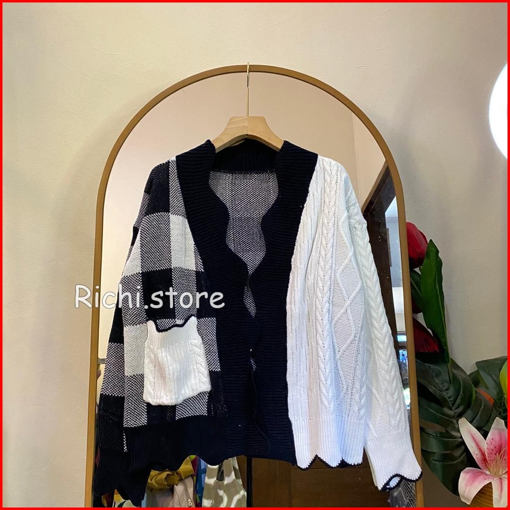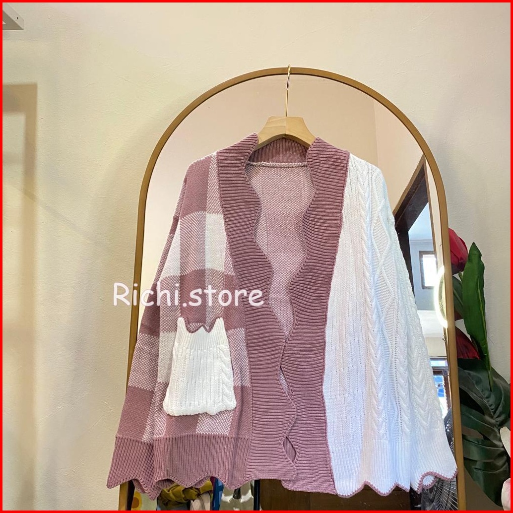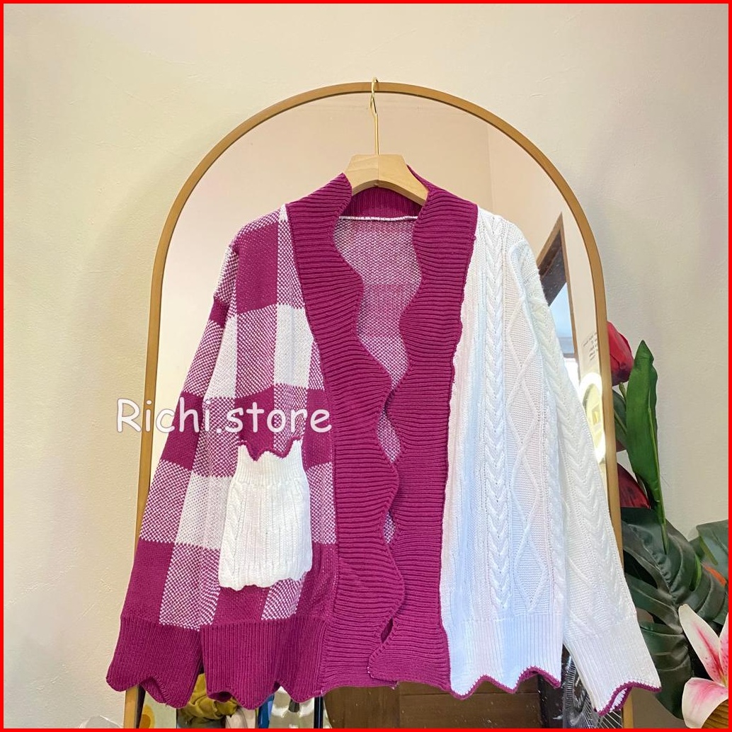 Sella Cardigan Rajut Combo Motif Cable Kotak