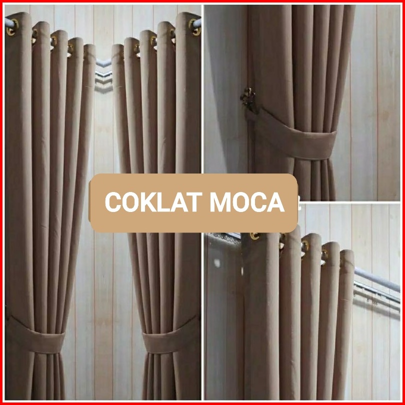 Gorden Embos Polos Warna Coklat Moca Lebar 100cm 10 Ring