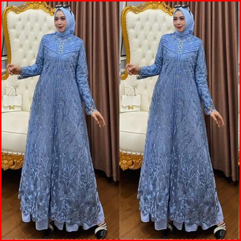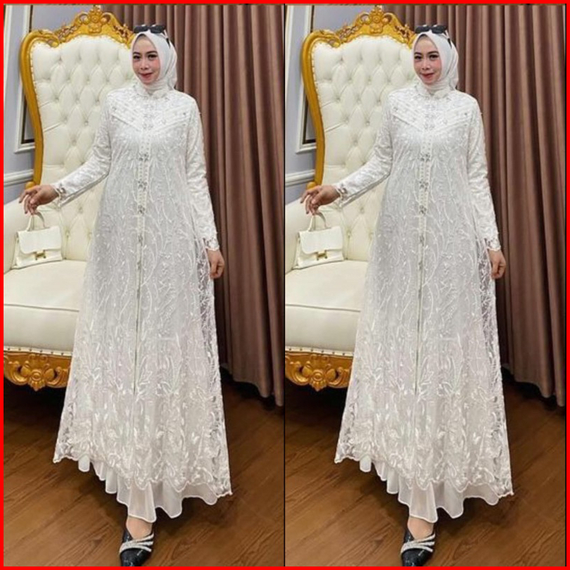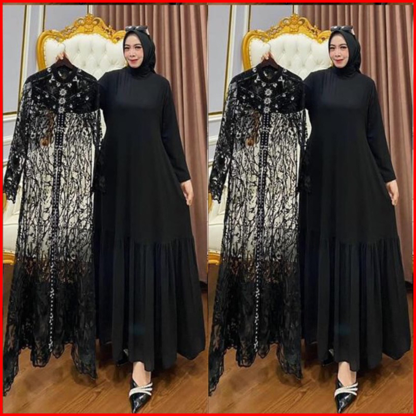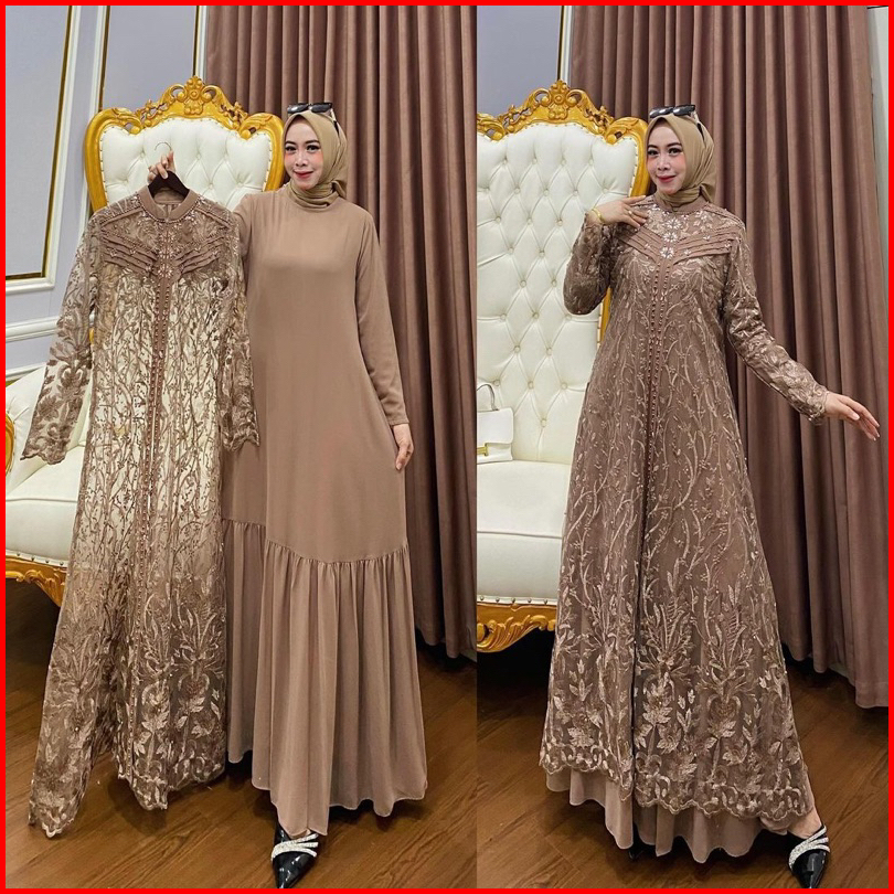 Gamis Brokat Terbaru 2024 Zallia Dress Bahan Ceruty Babydol Full Furing Mix Brukat Aplikasi Payet Mewah