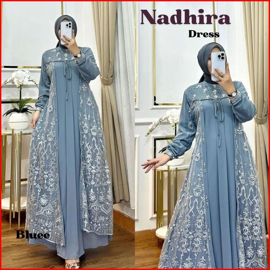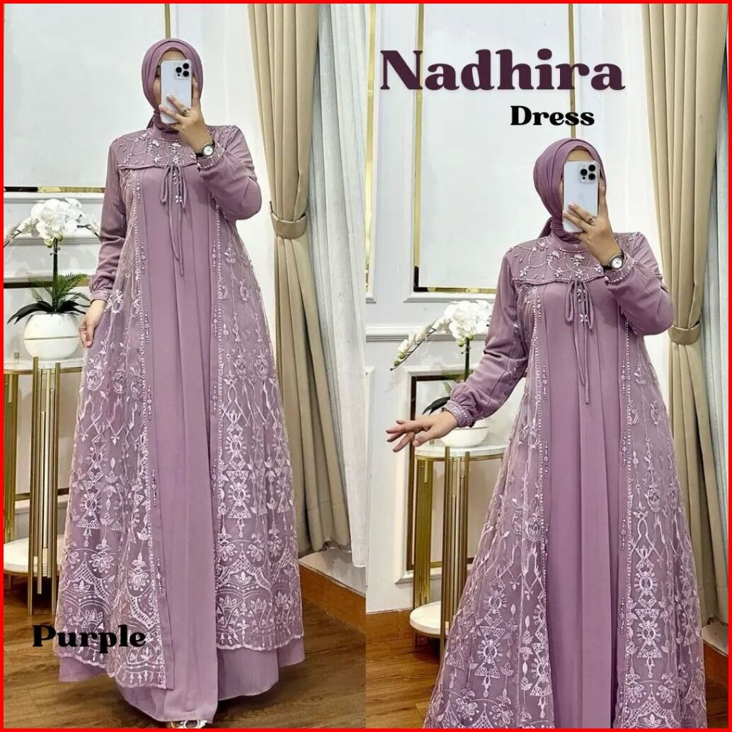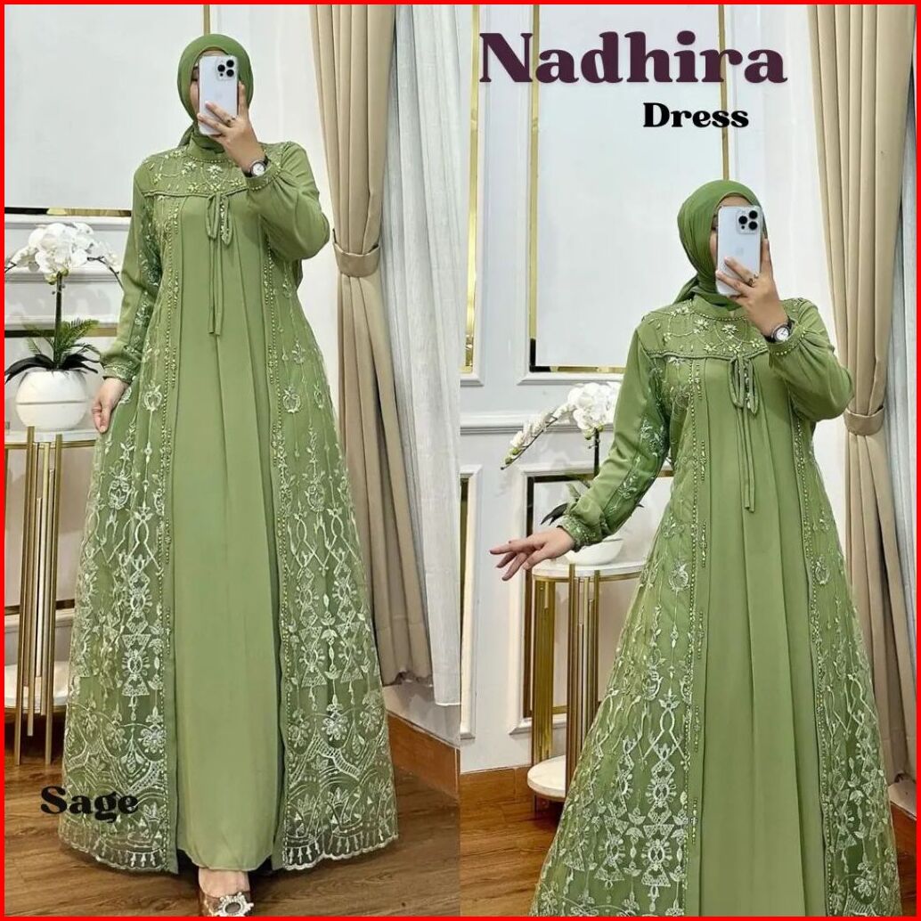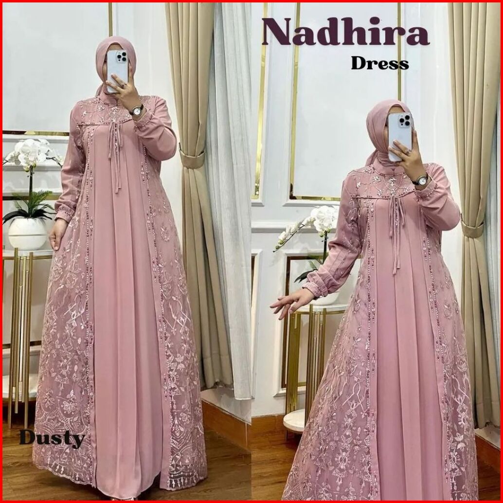 Nadhira Gamis Brukat Pesta Aplikasi Mutiara Payet Dress Kondangan Jumbo Wanita Layer Depan Gaun 2024