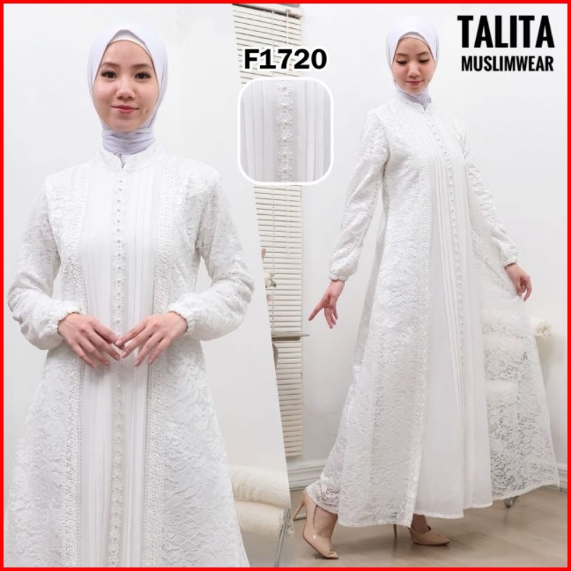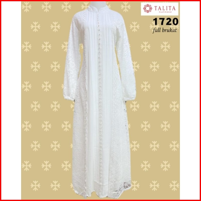 Gamis Putih Full Brukat Premium Polos Tengah Buka Bawah