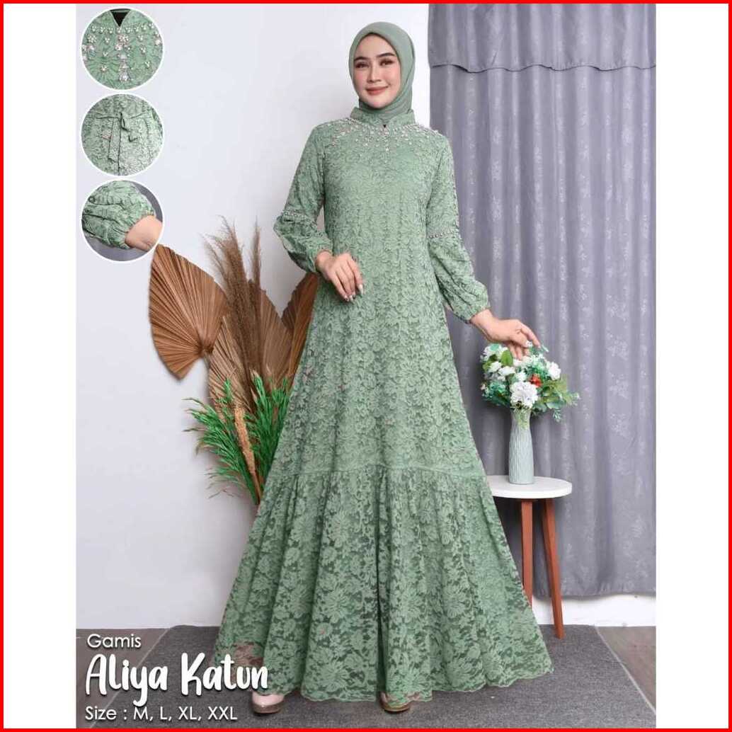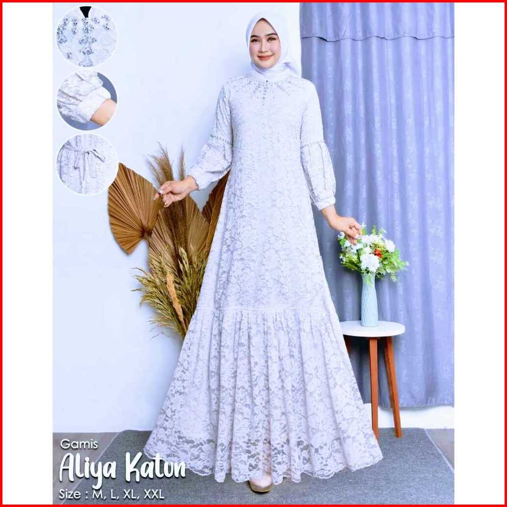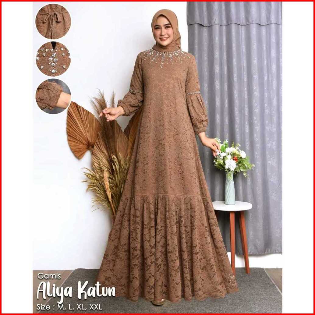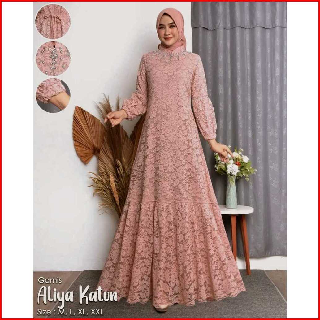Gamis Aliya Full Brukat Puring Taburan Mutiara Up To Ld 140