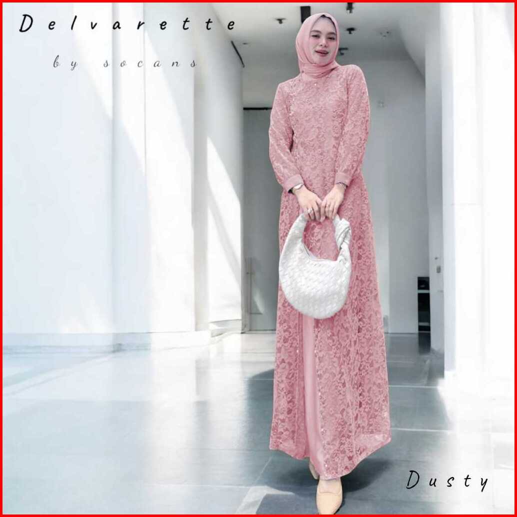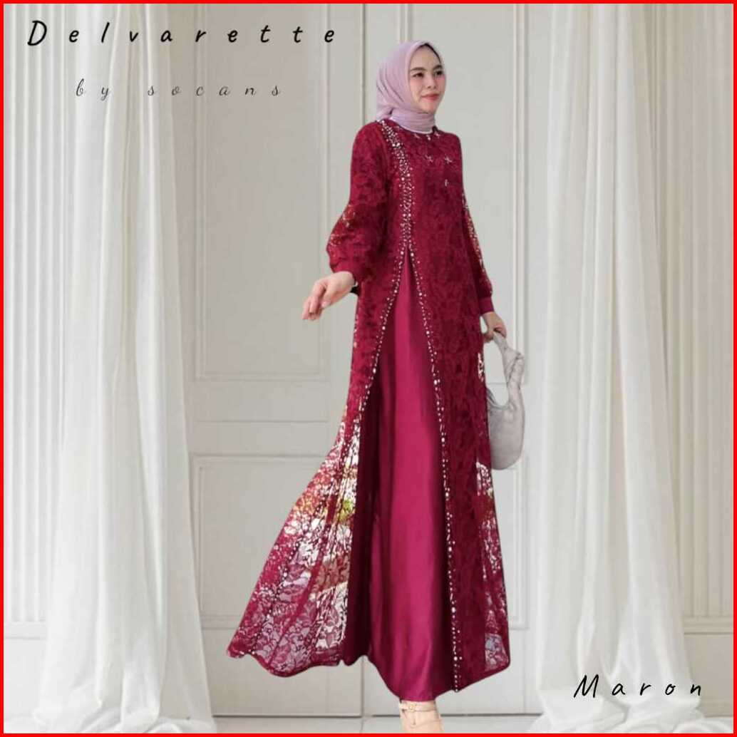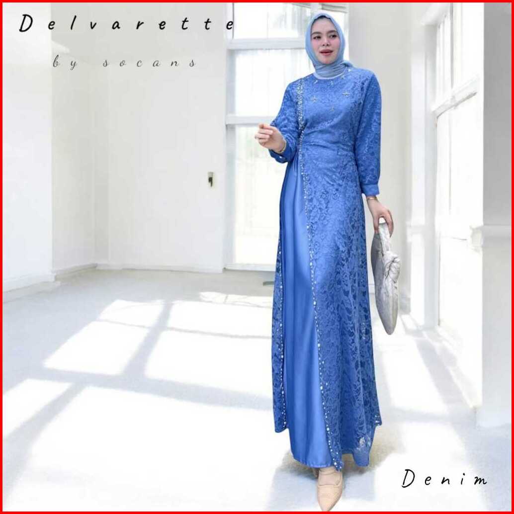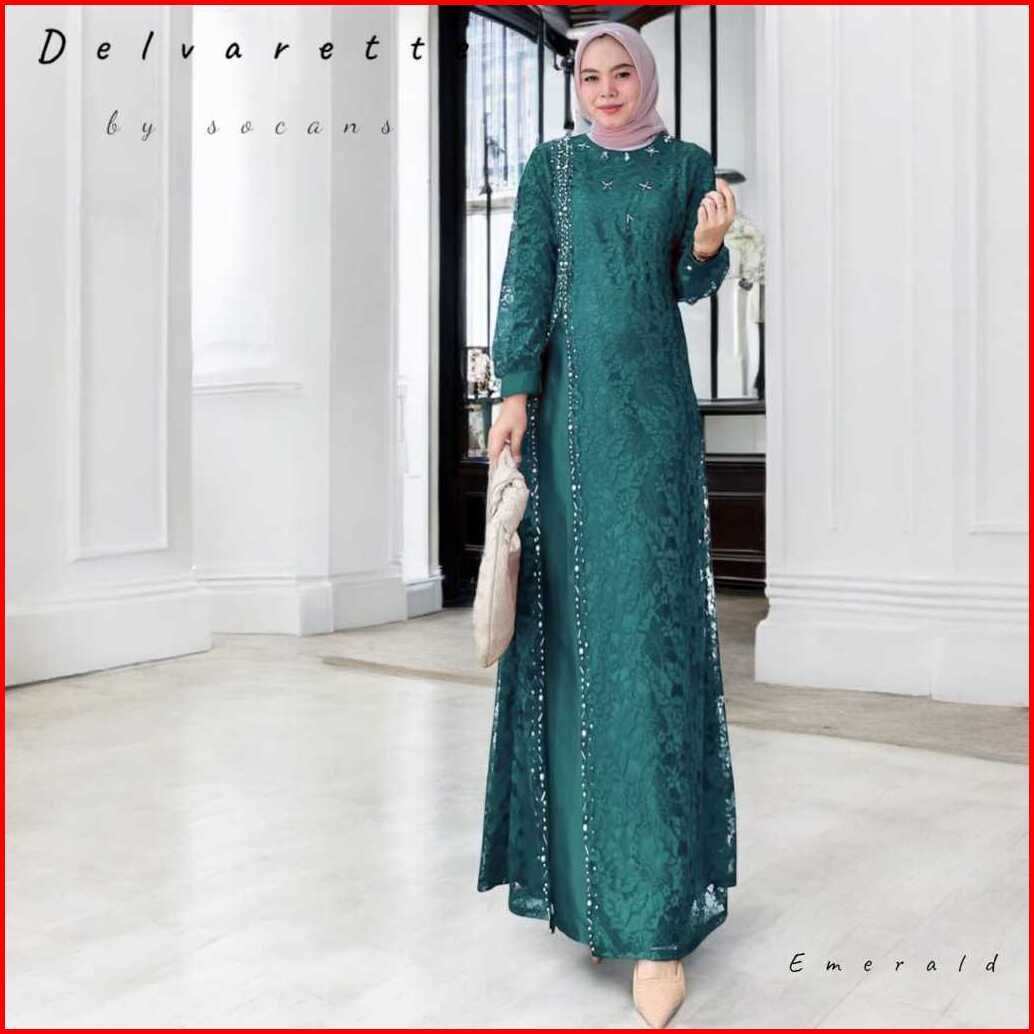 Delvarette Gamis Brukat Dress Payet Elegan Modern Untuk Pesta Kondangan Wisuda Bridesmaid Lebaran