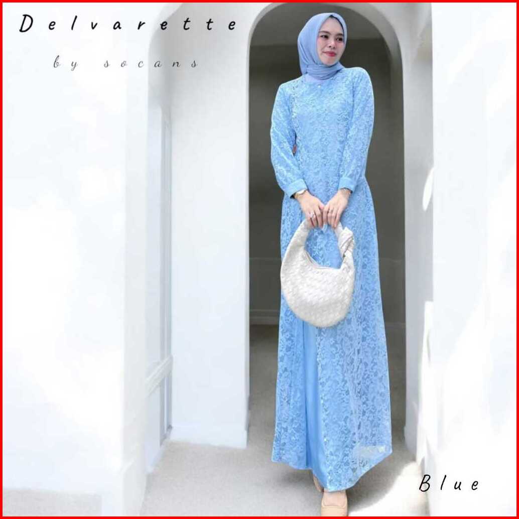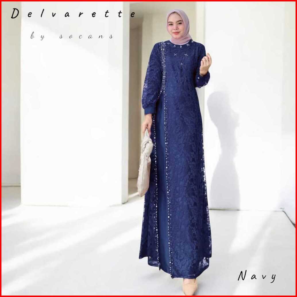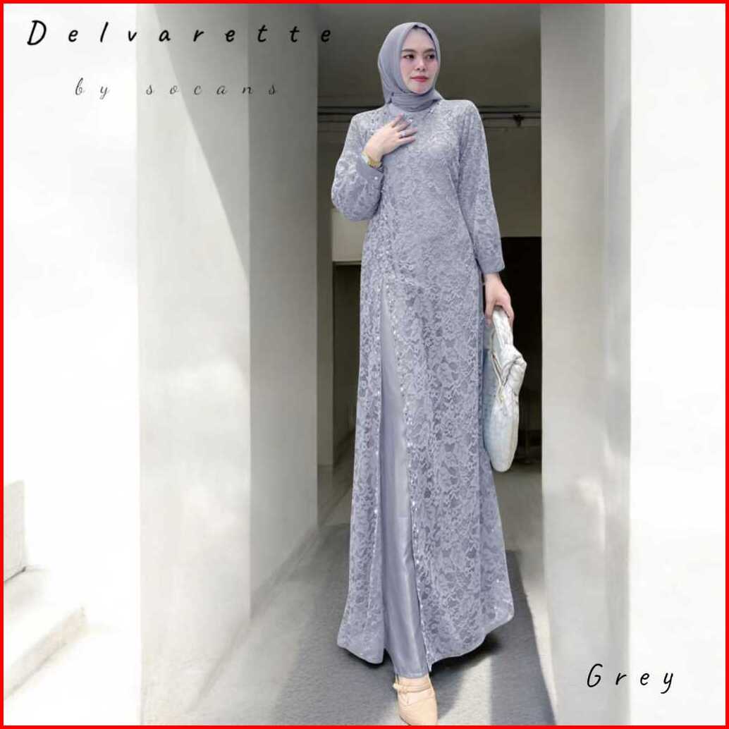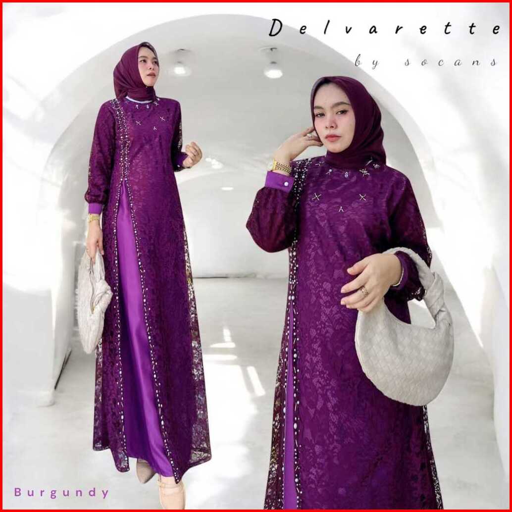 Delvarette Gamis Brukat Dress Payet Elegan Modern Untuk Pesta Kondangan Wisuda Bridesmaid Lebaran