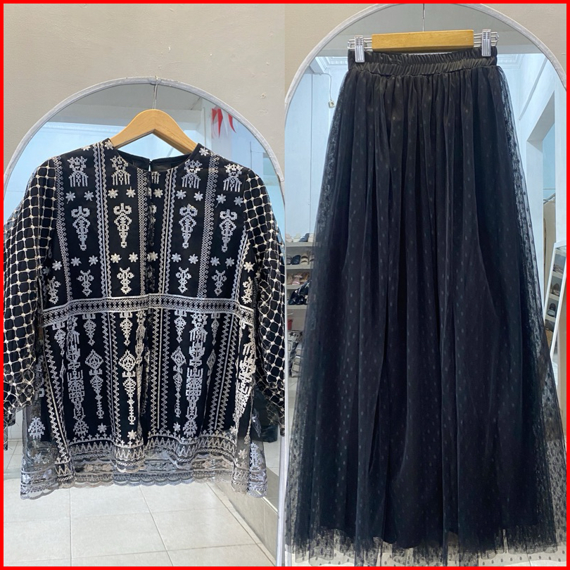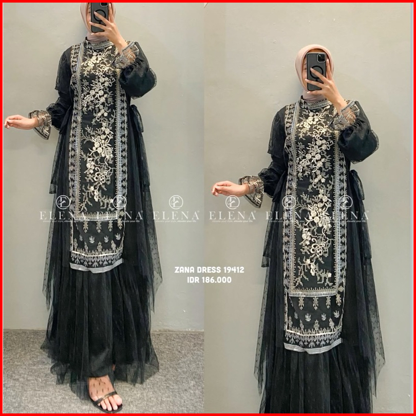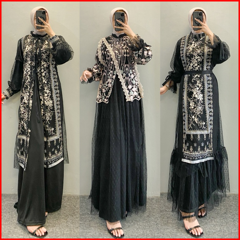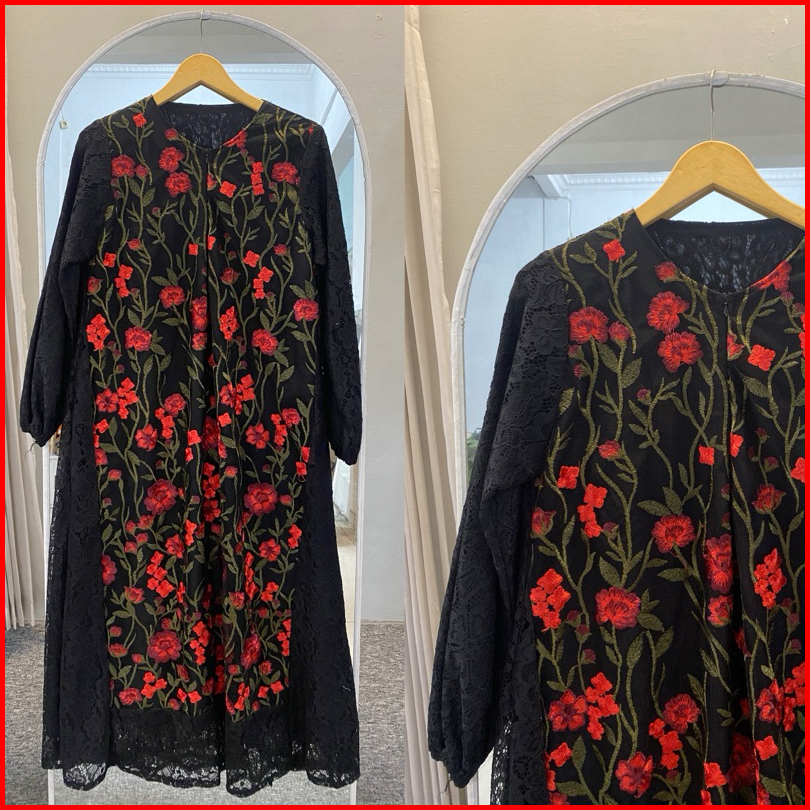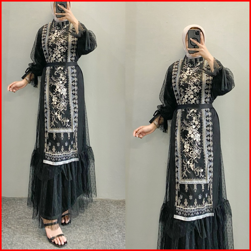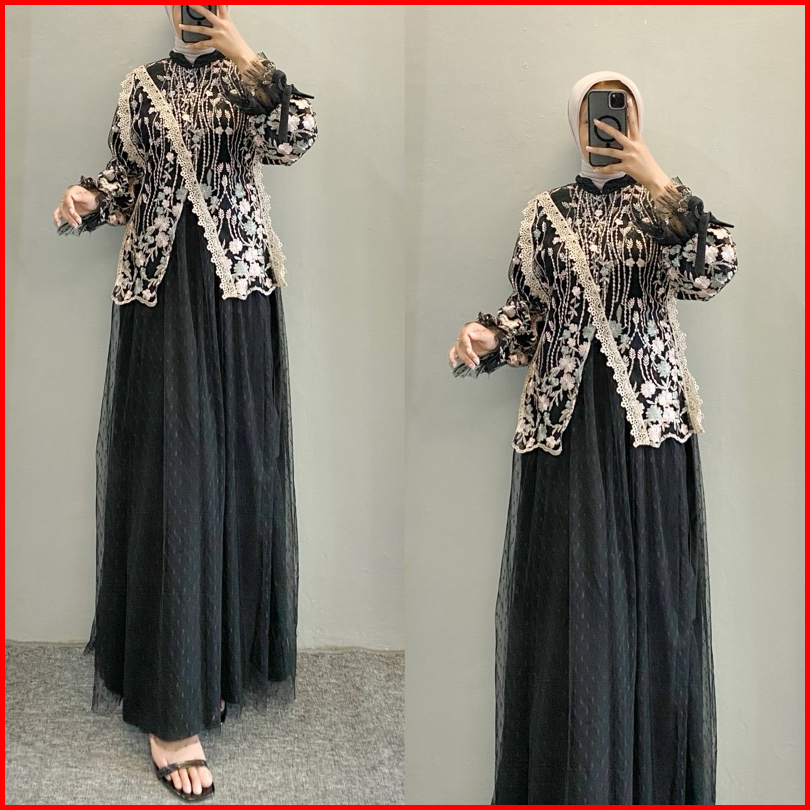 Dress Gamis Kondangan Bahan Brukat Tile Bunga Bordir Gamis Hitam Kasual Kondangan Wisuda Kekinian Brukat Bunga