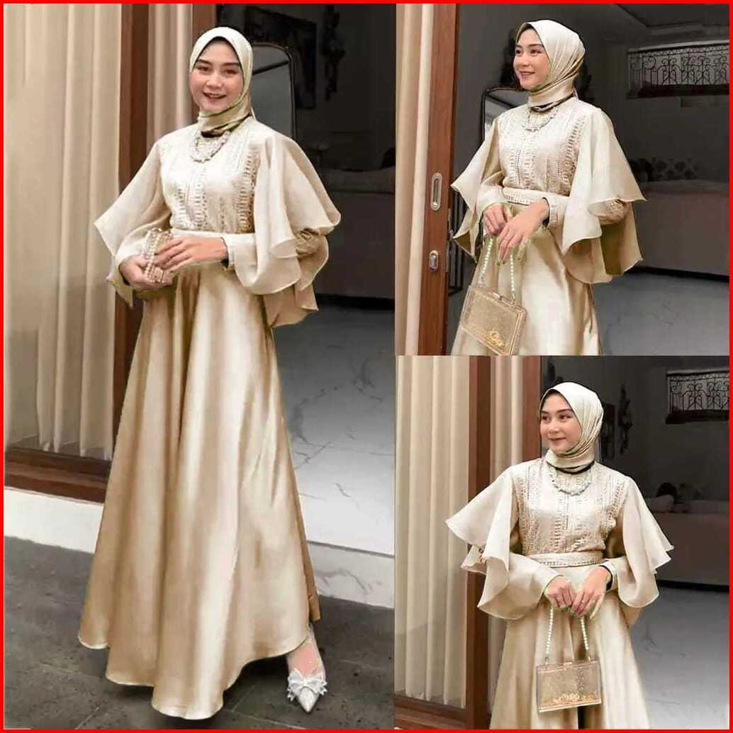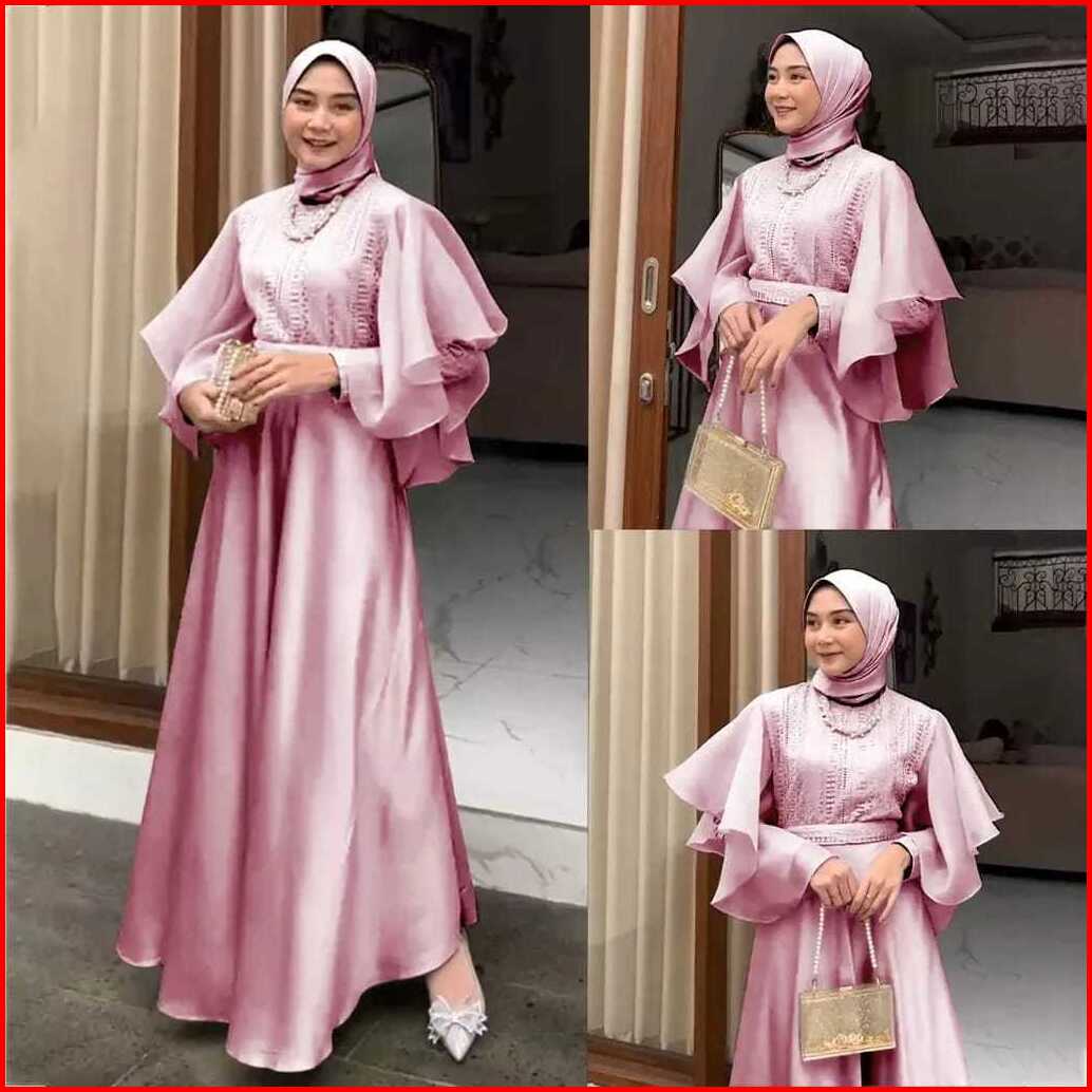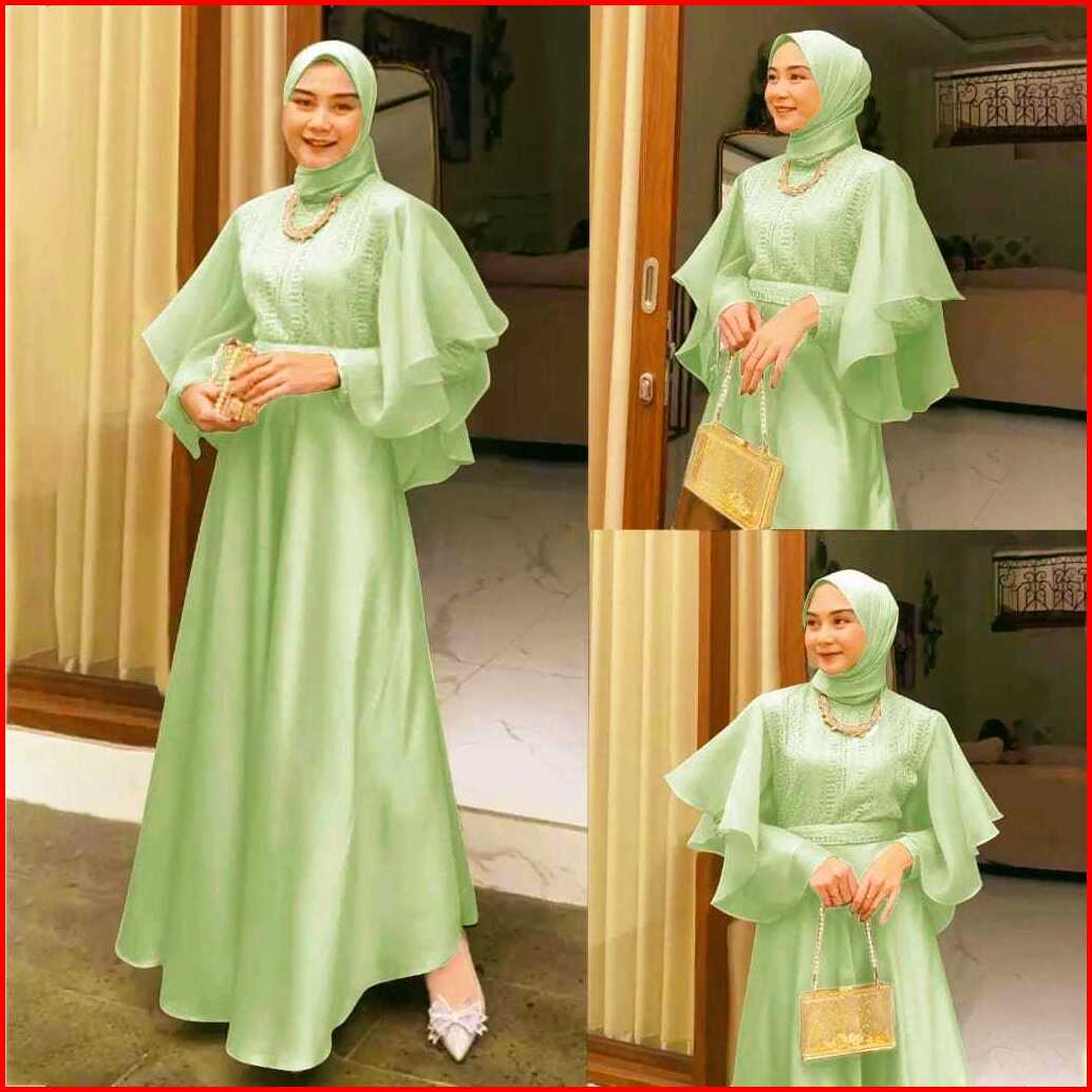 Gamis Maxi Almeera Gamis Wanita Satin Brukat Malika Organza Gamis Muslim Kondangan Pesta Terbaru