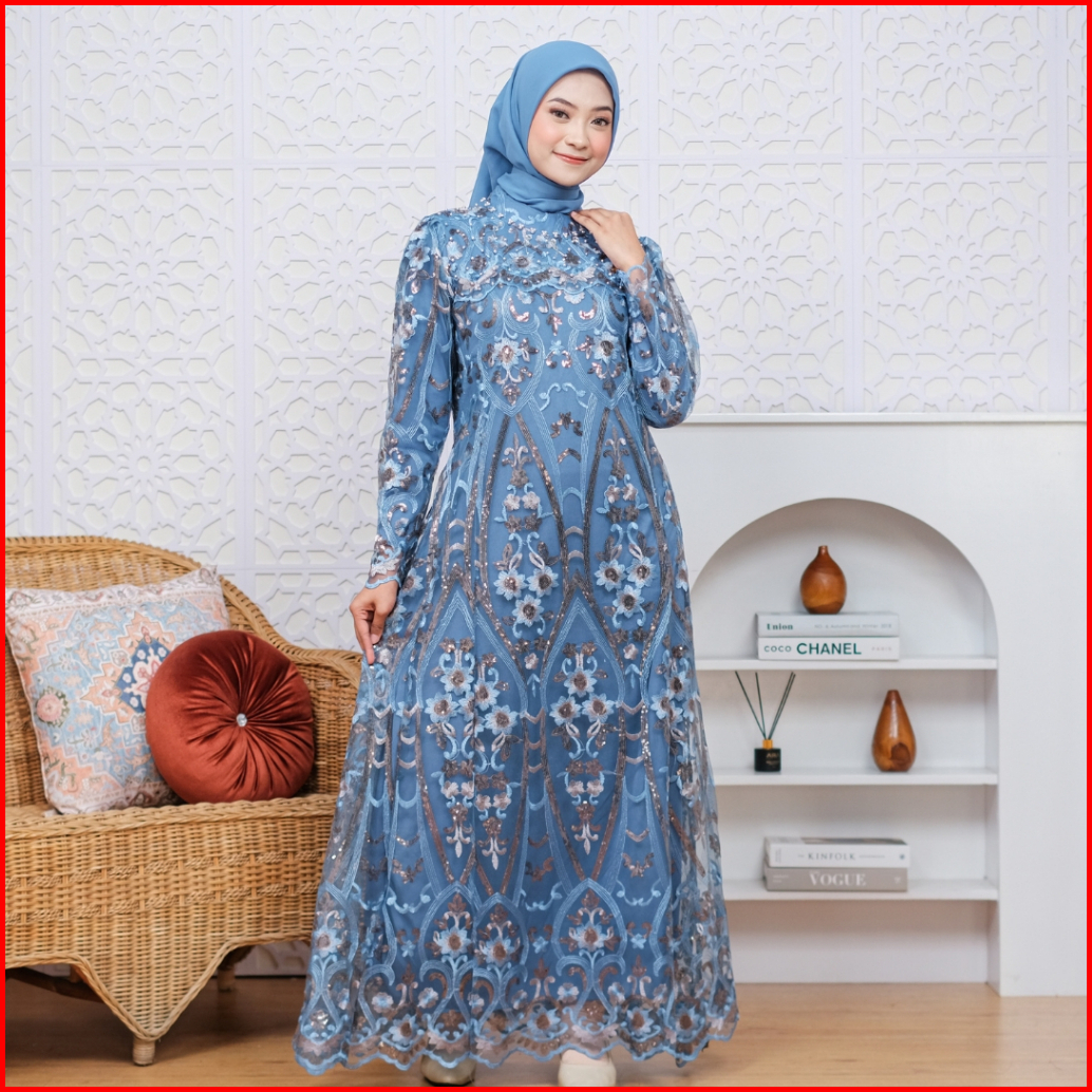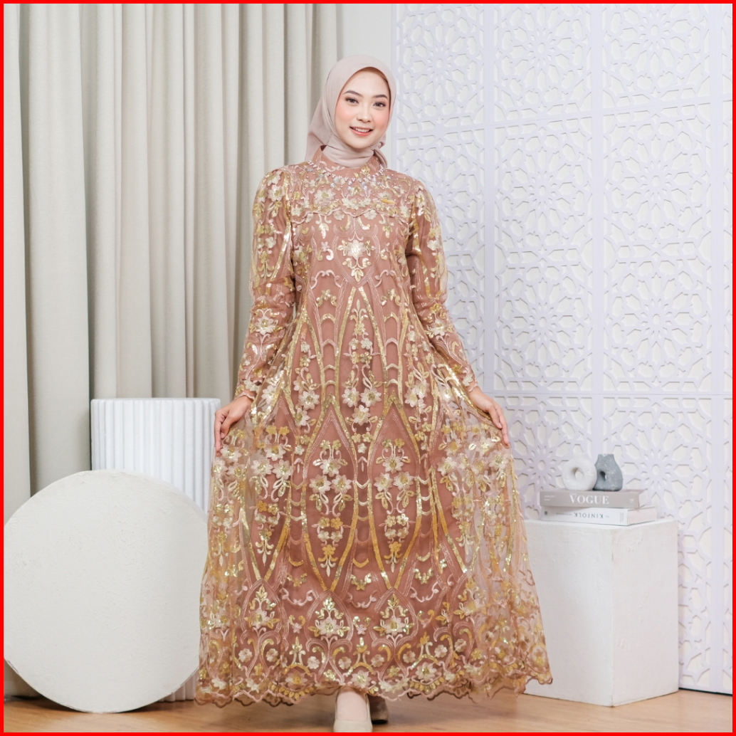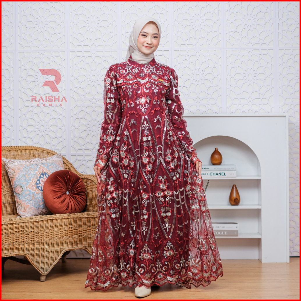 Raisha-gamis Brukat Salma Dress Kondangan Exlusive Tile Kaca Spingle Bordir Keliling Untuk Gamis Kondangan Gamis Pesta D