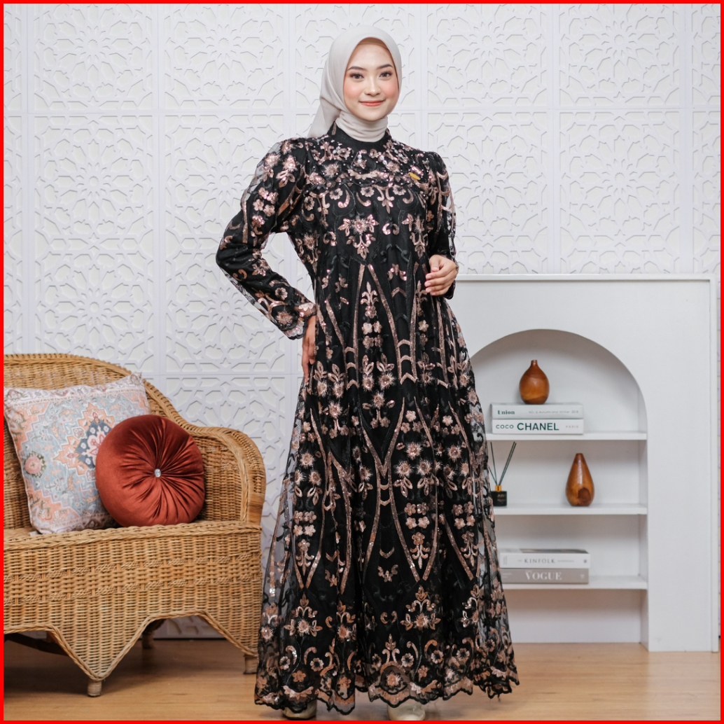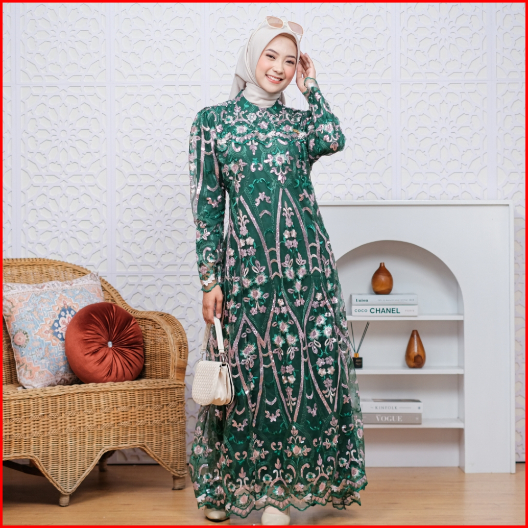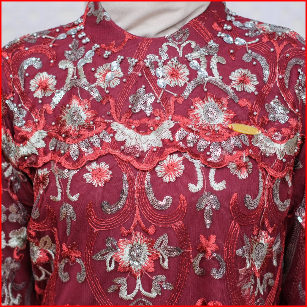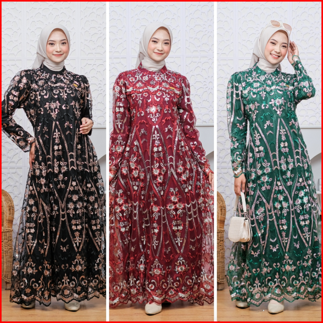 Raisha-gamis Brukat Salma Dress Kondangan Exlusive Tile Kaca Spingle Bordir Keliling Untuk Gamis Kondangan Gamis Pesta D