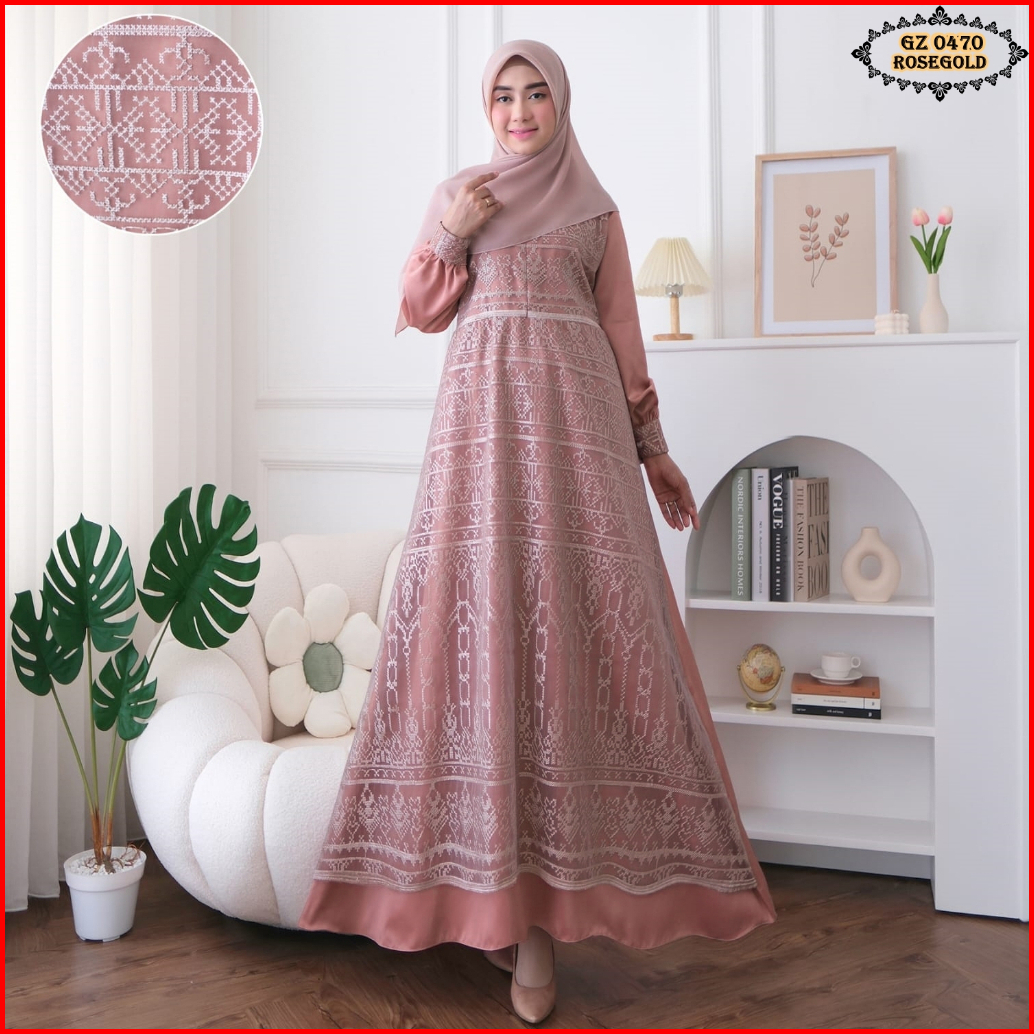 Gamis Brukat Organza Gz0470 Rosegold Gamis Brukat Rosegold Gamis Pesta Rosegold