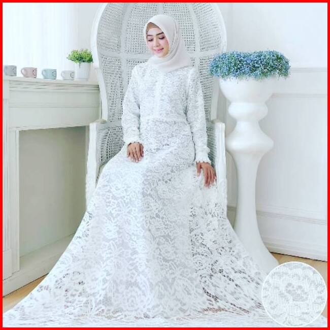 Gamis Brukat Putih Gamis Nikah Gamis Putih Mewah Baju Putih Gamis Brokat Putih White Dress