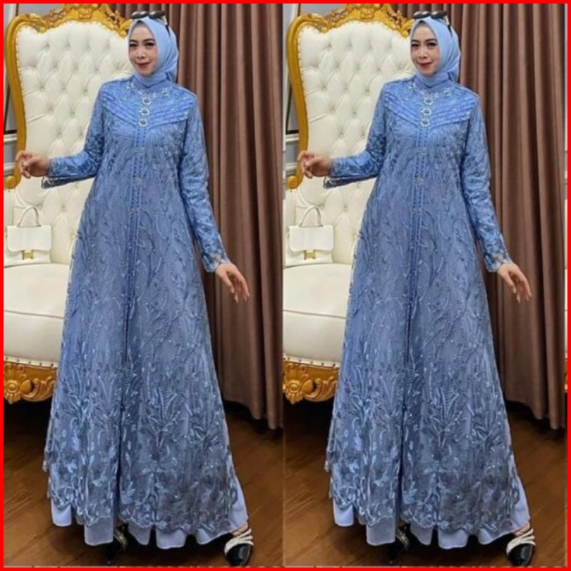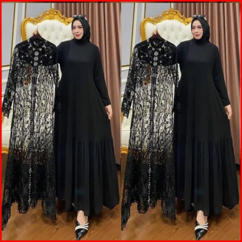 Zallia Dress Bahan Ceruty Babydoll Full Furing Mix Brukat Aplikasi Payet Desain Mewah Elegan Fitt Xxl