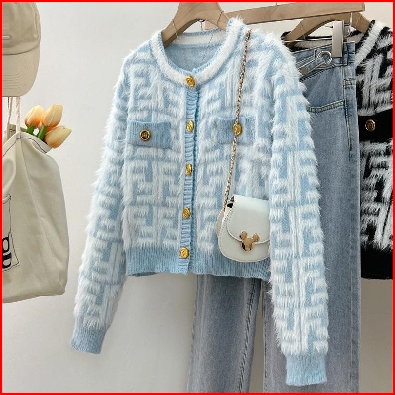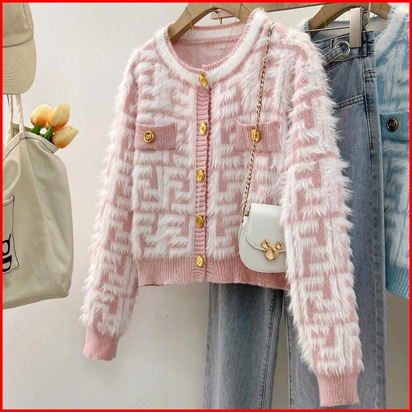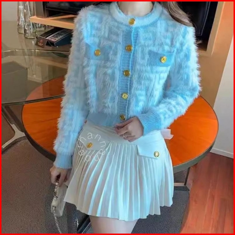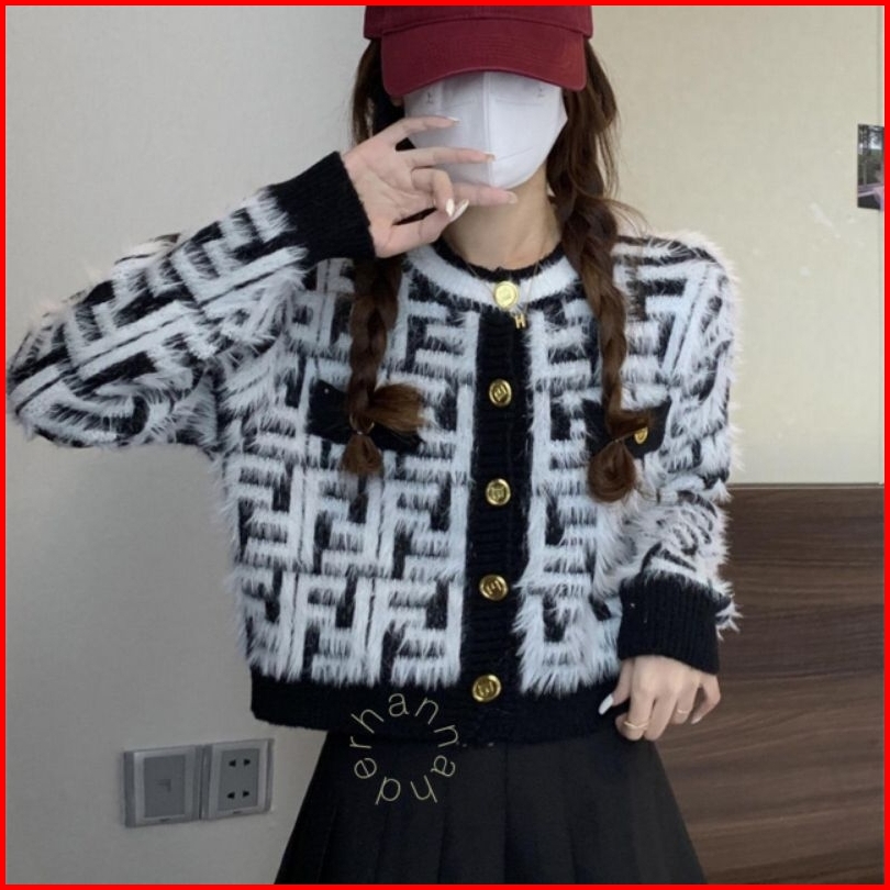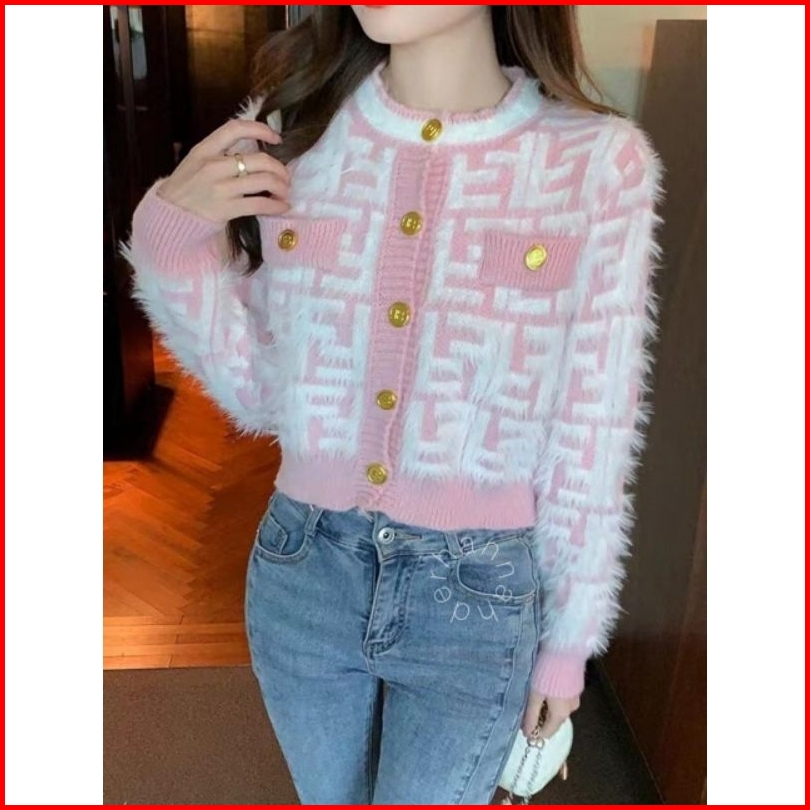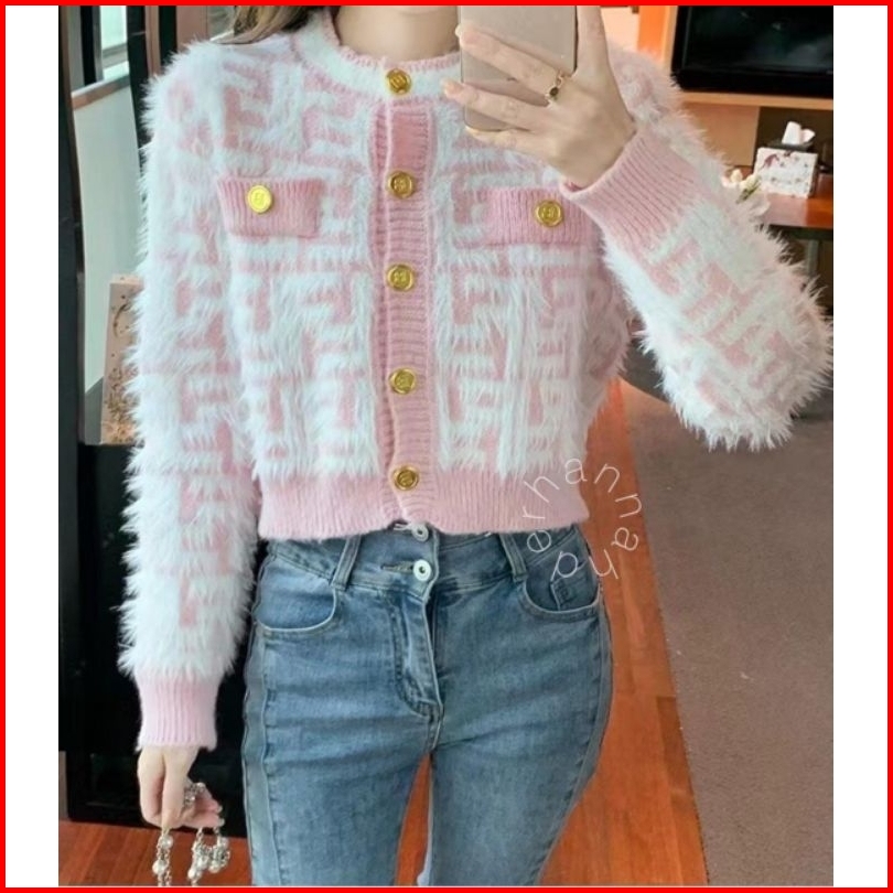 - Ready Stock - Felma Cardigan Korea Knit Rajut Bulu Fuzzy