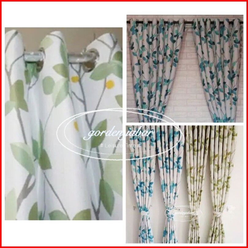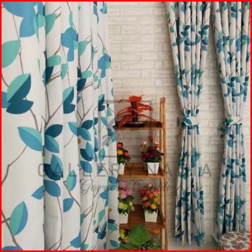 Gorden Blackout Motip Bunga Merambat Amora Hijau Biru Grosir Gorden Jendela Pintu Ukuran 100x200cm