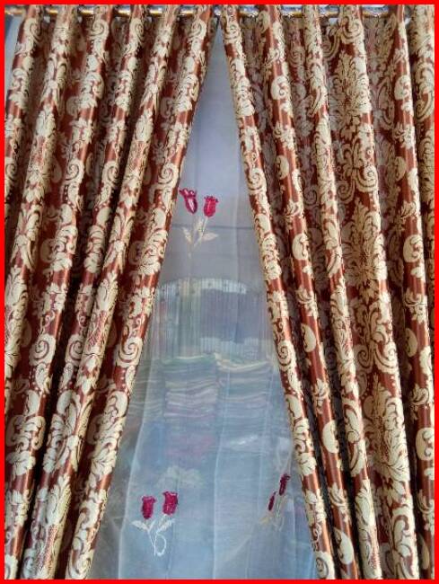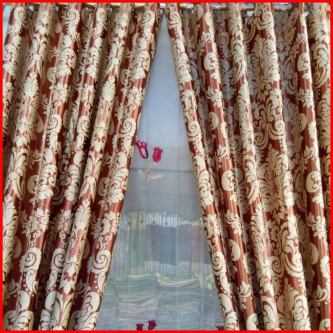 Hordeng Gorden Bludru Import Coklat Motif Bolak Balik