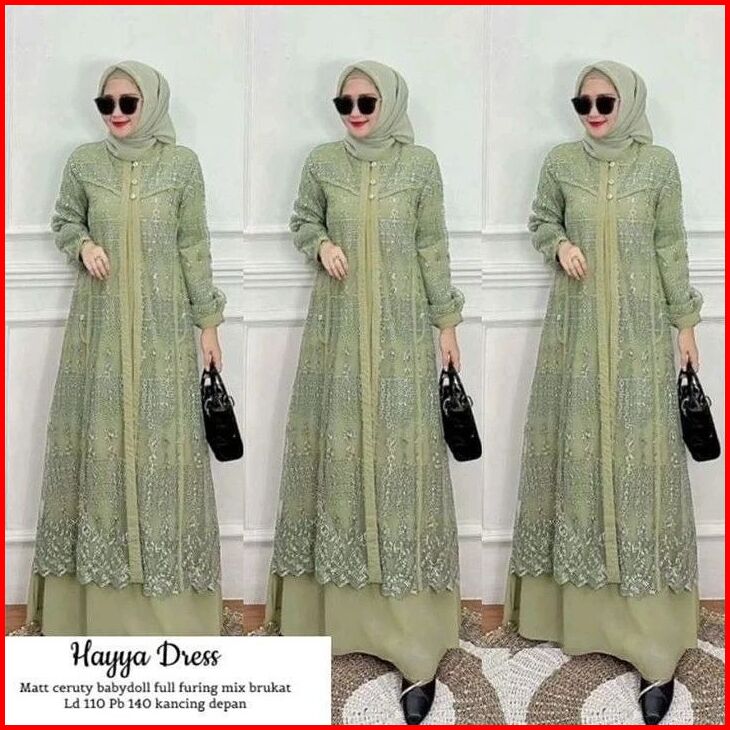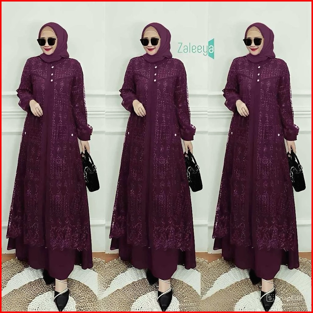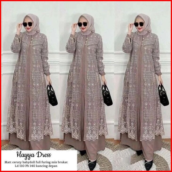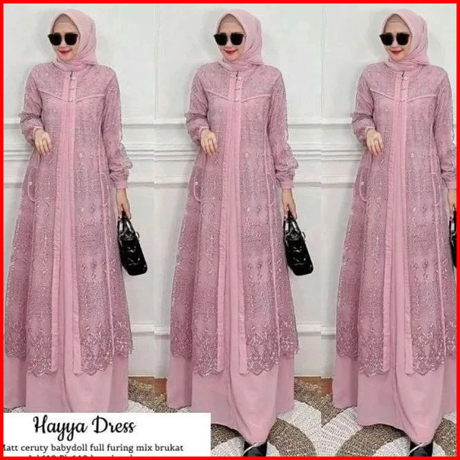 Size S-3l Gamis Brukat Pesta Wanita Muslim Terbaru Wilona Dress Bahan Ceruti Babydoll Brokat Premium