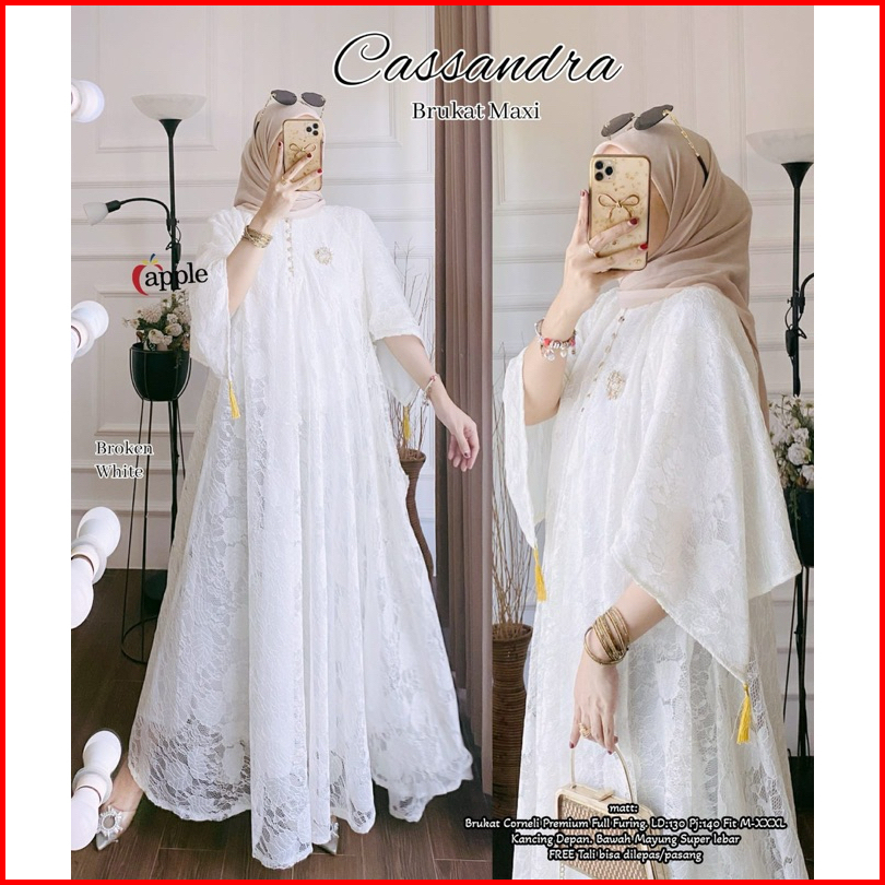 Cassandra Gamis White Jumbo Xxxl Xxxxl Apple Gamis Kondangan Brukat Dress Pesta Muslimah Dress Seragaman Dress Bridal Ga