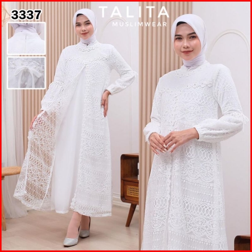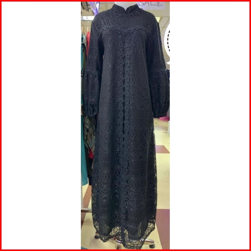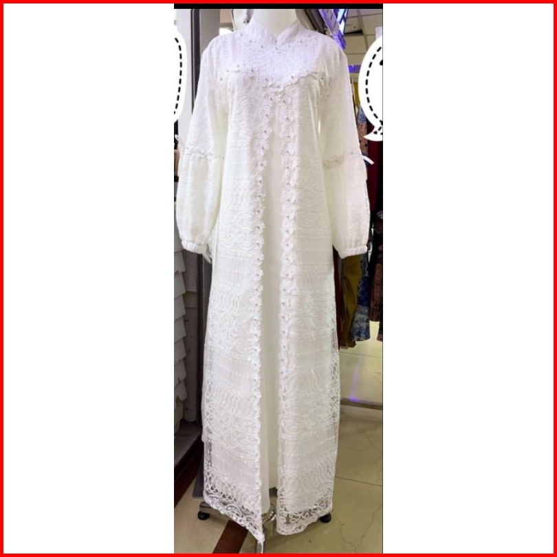 Gamis Abaya Putih Full Brukat Bordir Premium Buka Pintu Tangan Balon