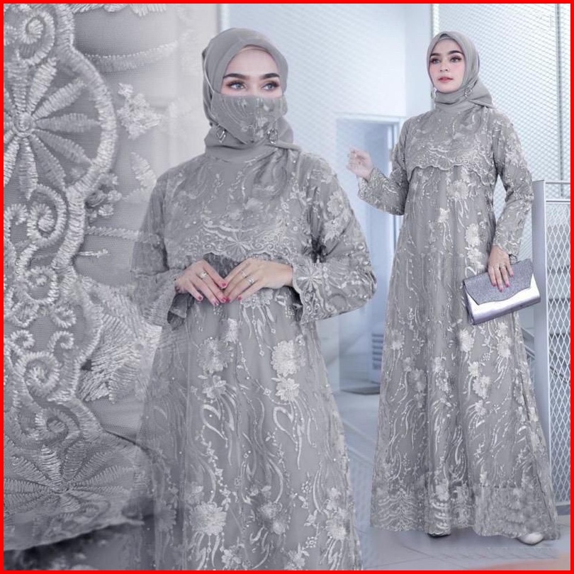 Maxi Sonaya S M L Xl Xxl Full Tile Mutiara Gamis Kondangan Gamis Pesta Gamis Brukat
