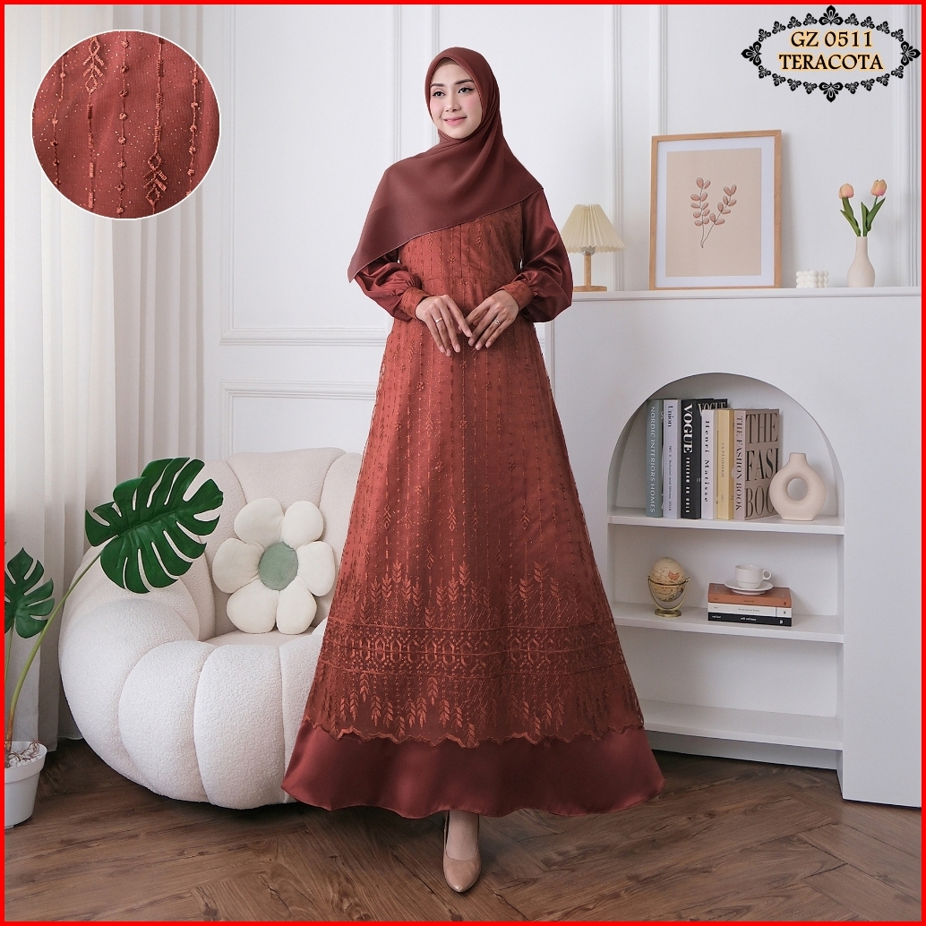 Gamis Brukat Tile Gz0511 Teracota Gamis Kondangan Gamis Pesta Gamis Jumbo Gamis Teracota