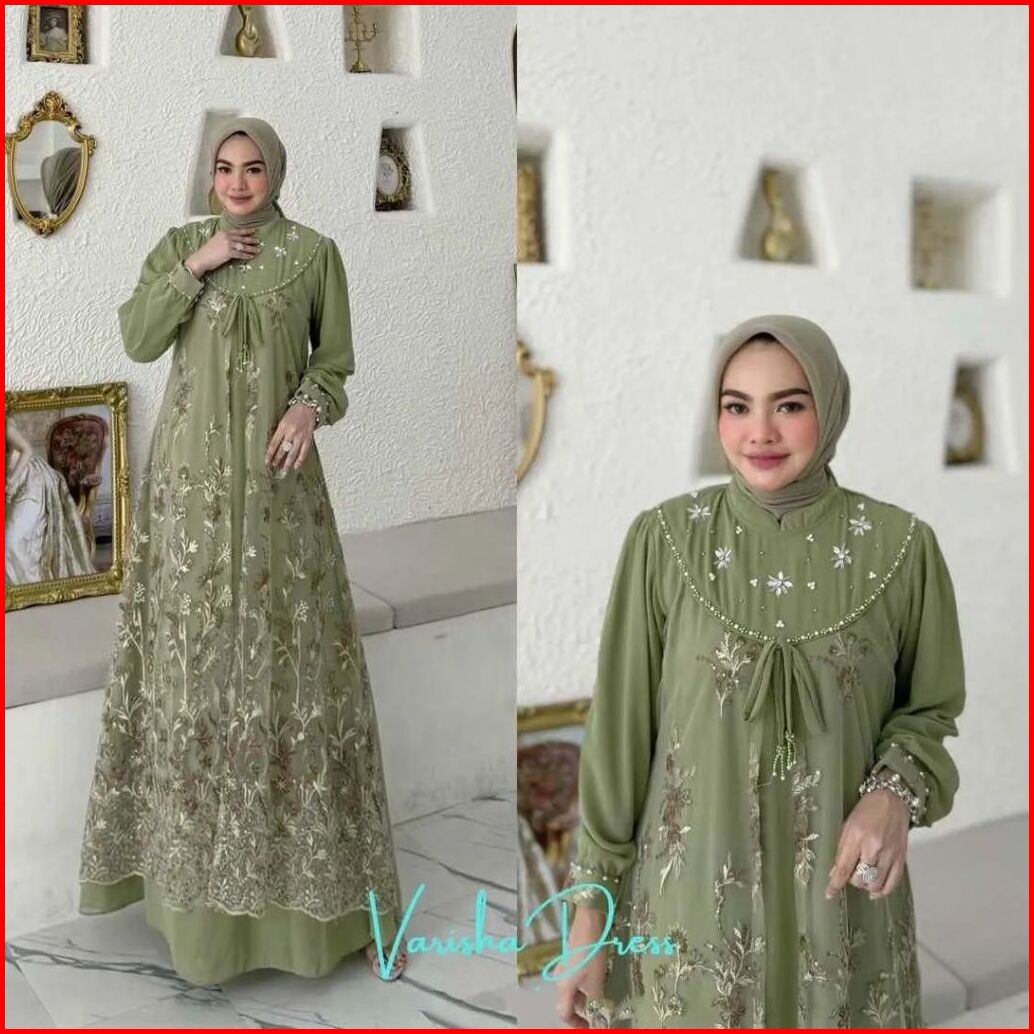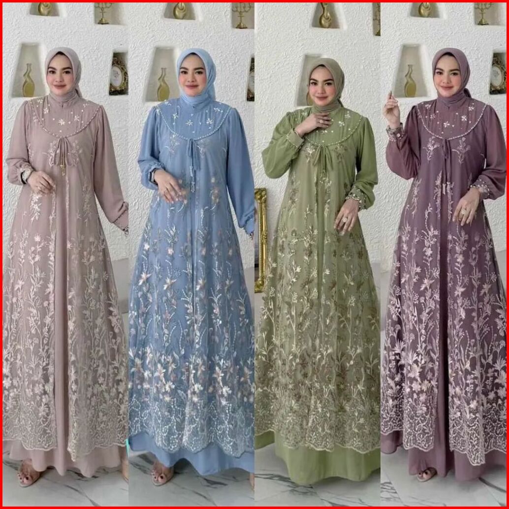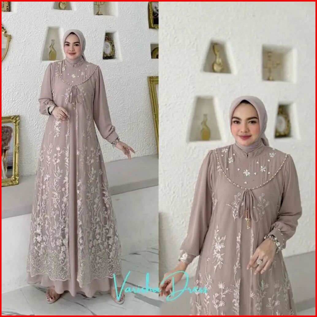 Ellyfashion Varisha Dress Brukat Bahan Ceruty Gamis Lebaran 2024 Model Gamis Terbaru Dress Kondangan