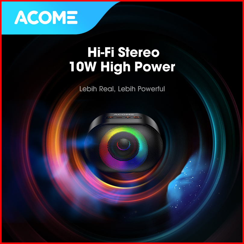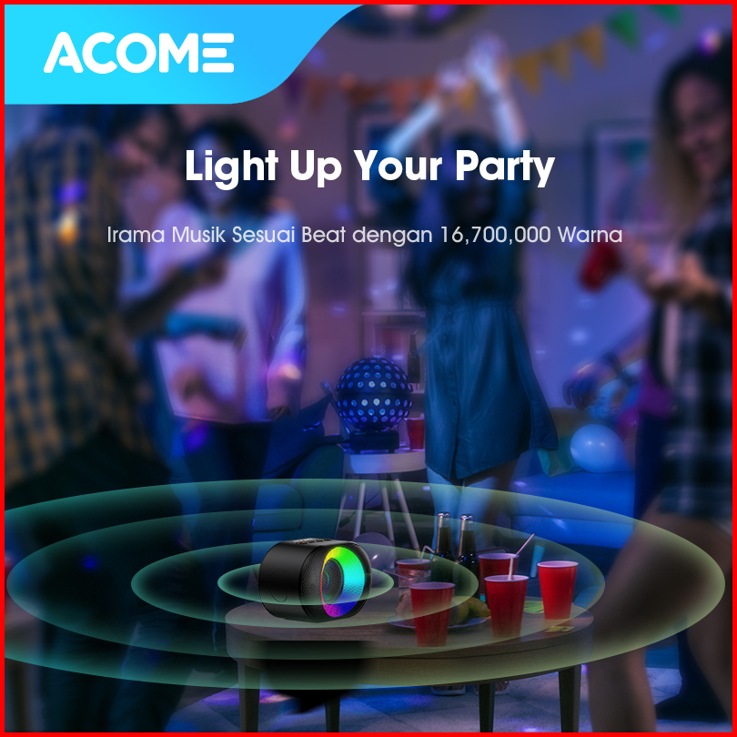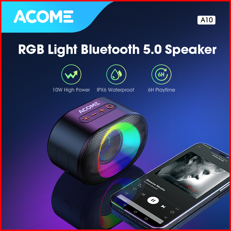 Acome Speaker Bluetooth 5.0 10w Ipx6 Waterproof Rgb Light Rhyme Rave Party A10 Garansi Resmi 1 Tahun