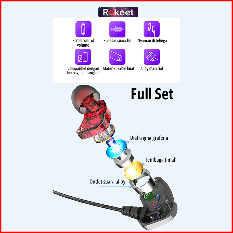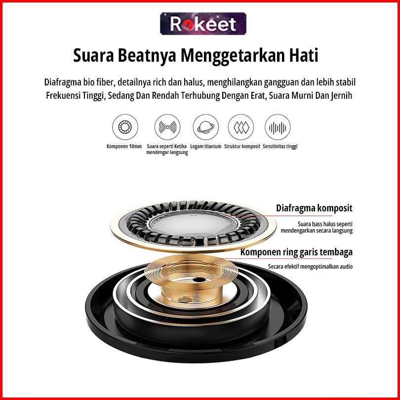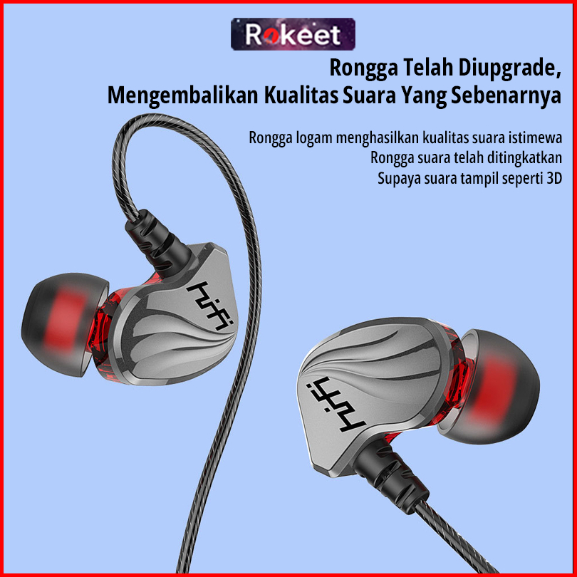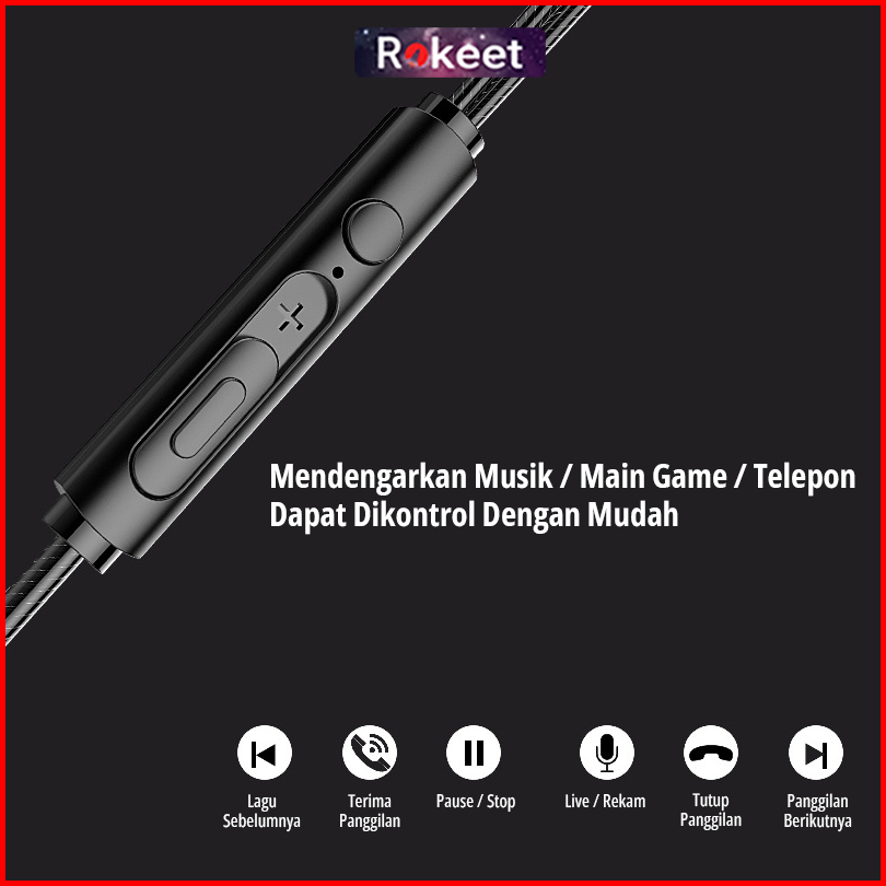 Rokeet In Earphone 9d Hifi With Mic Bass Stereo Headset Sport Gaming