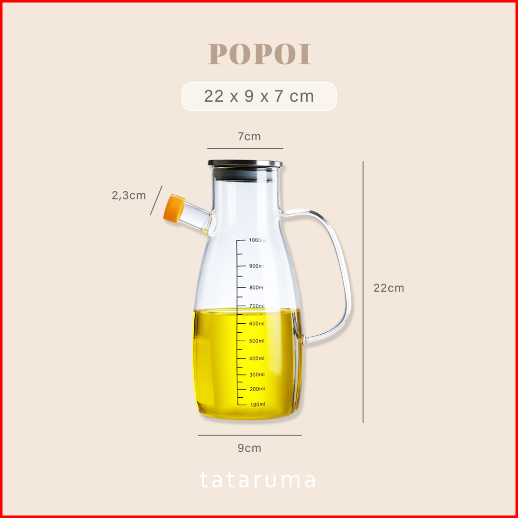 Tataruma Popoi - Oil Jar Tempat Minyak Dengan Penutup Kaca Borosilikat Simpan Kecap Minyak Wijen Cuka