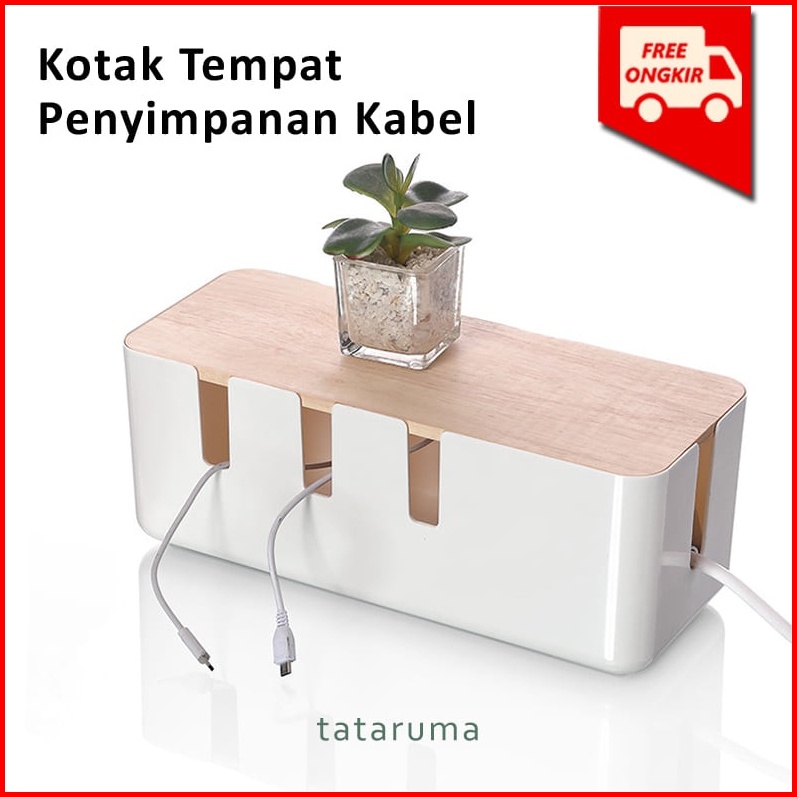 Tataruma Kibo - Kotak Tempat Penyimpanan Kabel Box Organizer Jalur Kabel Tutup Kayu