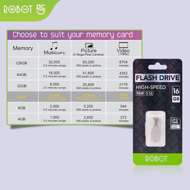 ( RESMI ) Flashdisk Merk ROBOT USB Bahan Metal 16GB RMF508 RMF516 Metal Berkecepatan Tinggi Kecil for All Windows -
