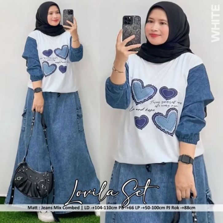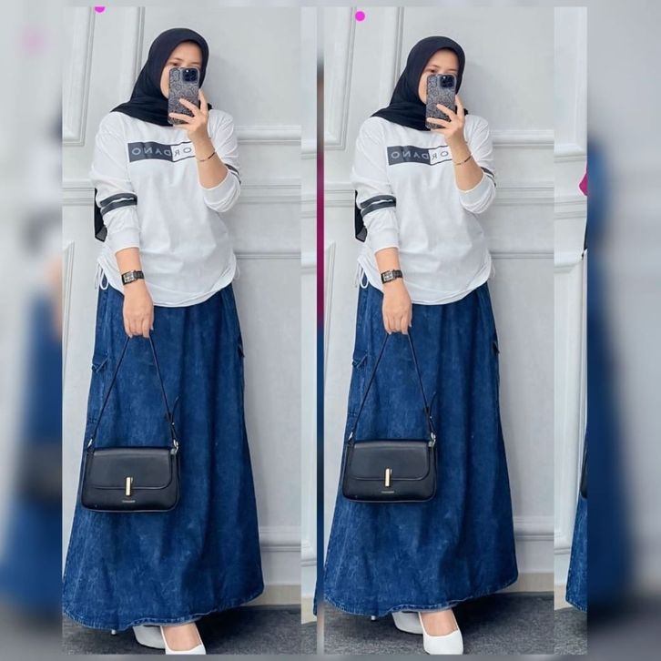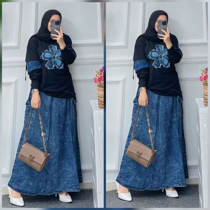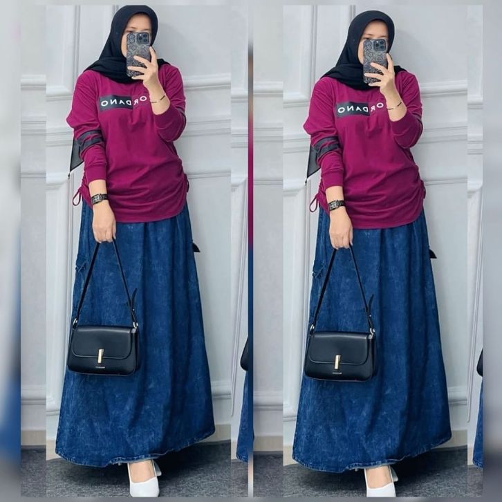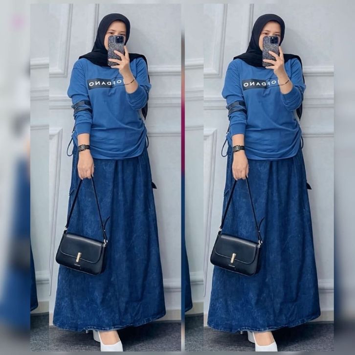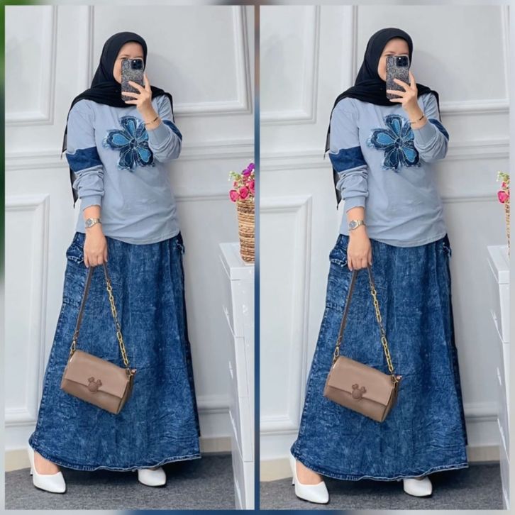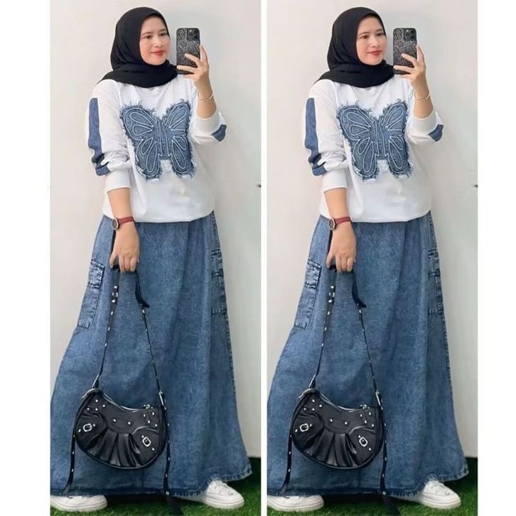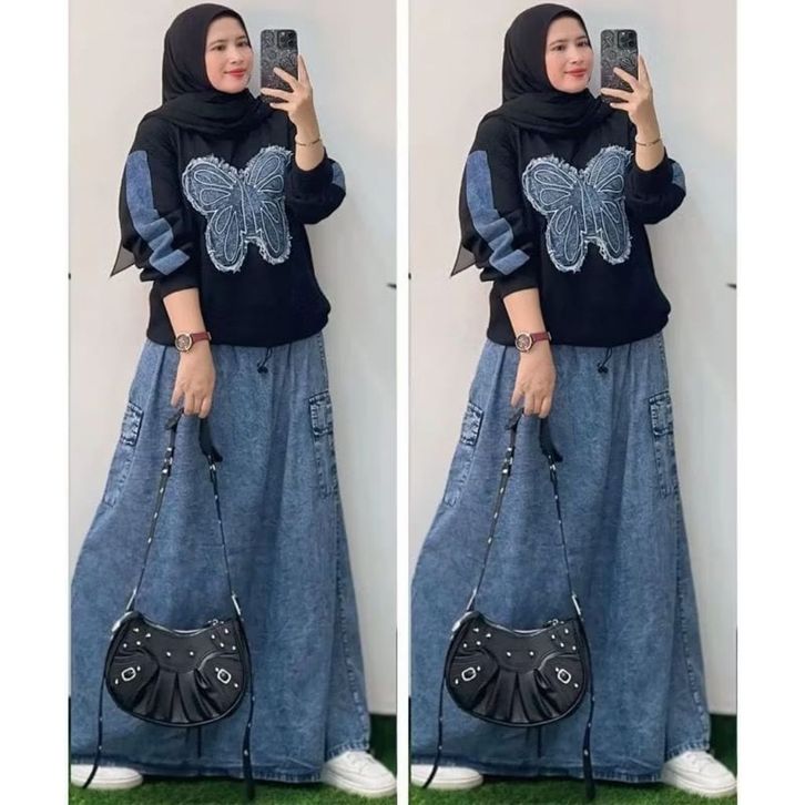 SETELAN ROK KAOS COMBAD ROK JEANS DANO SET TERBARU 2026 JUMBO LD 105-120