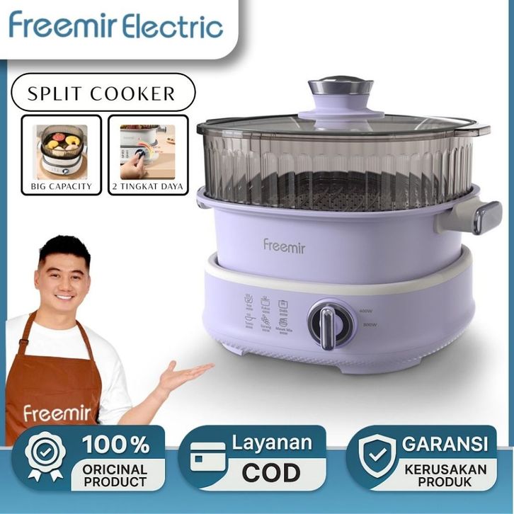 freemir Panci Kukus Listrik 1.5L - 2.5L Tutup Kaca Anti lengket Aesthetic Serbaguna Pengukus/ Penggorengan/ Pemanas -