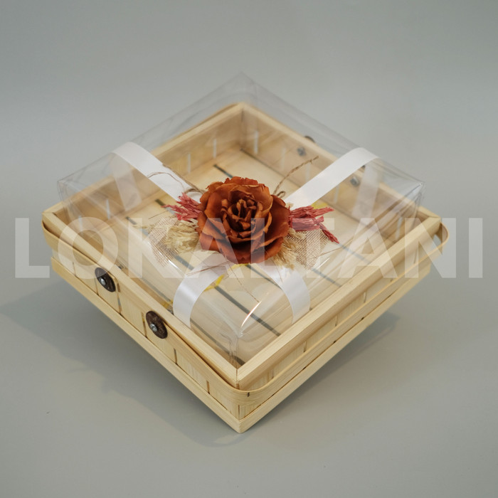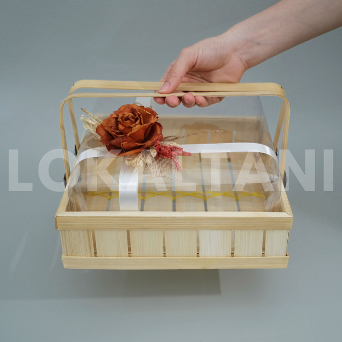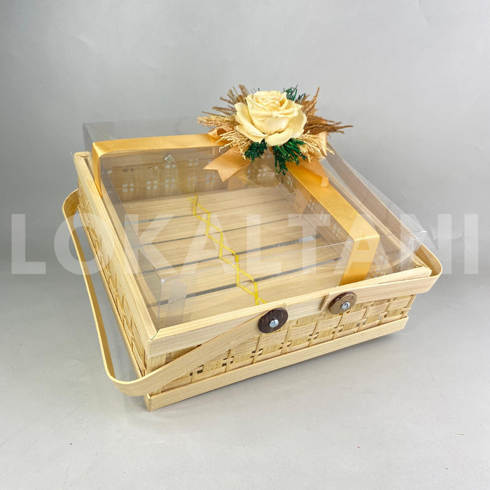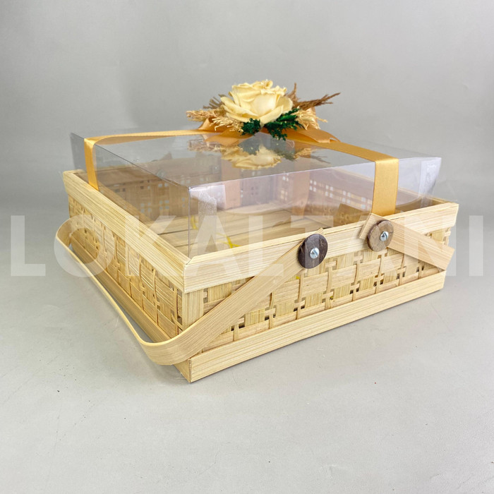 KERANJANG BAMBU KOTAK/KERANJANG HANTARAN/KERANJANG KUE MIKA 25CM - STANDAR