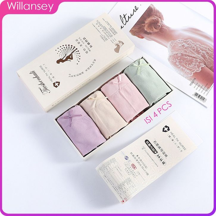 [Set Kotak 4pcs] Celana dalam antibakteri wanita Pakaian Dalam CD